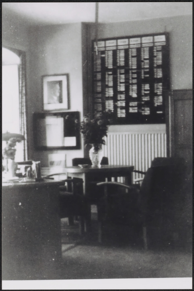 Foto van het kantoor met een planbord.