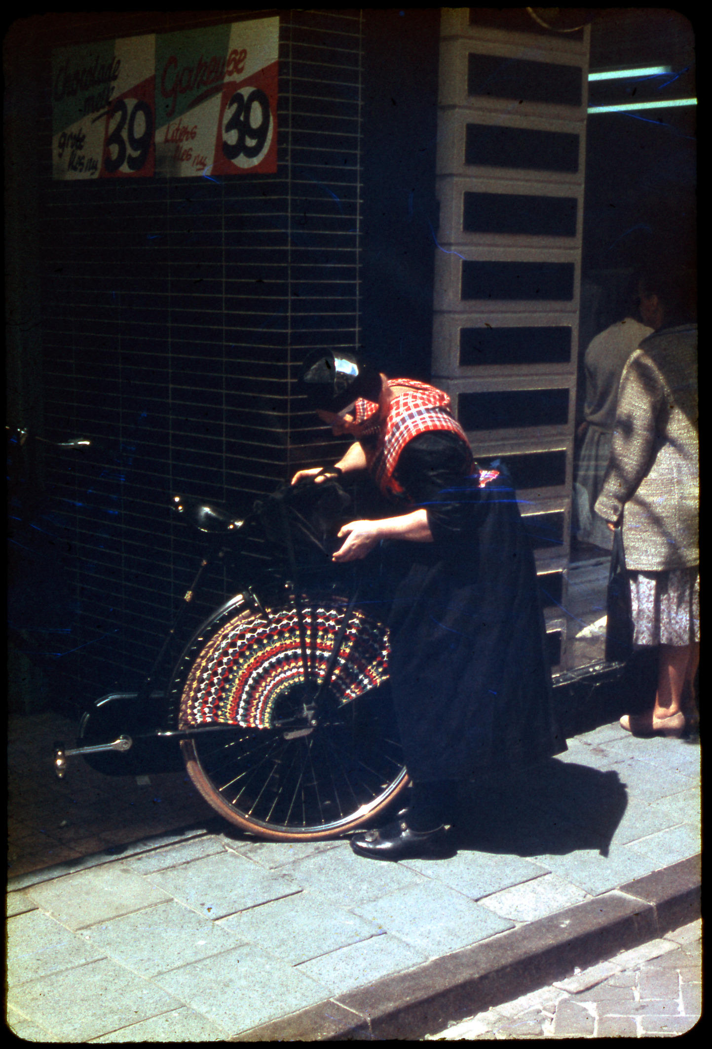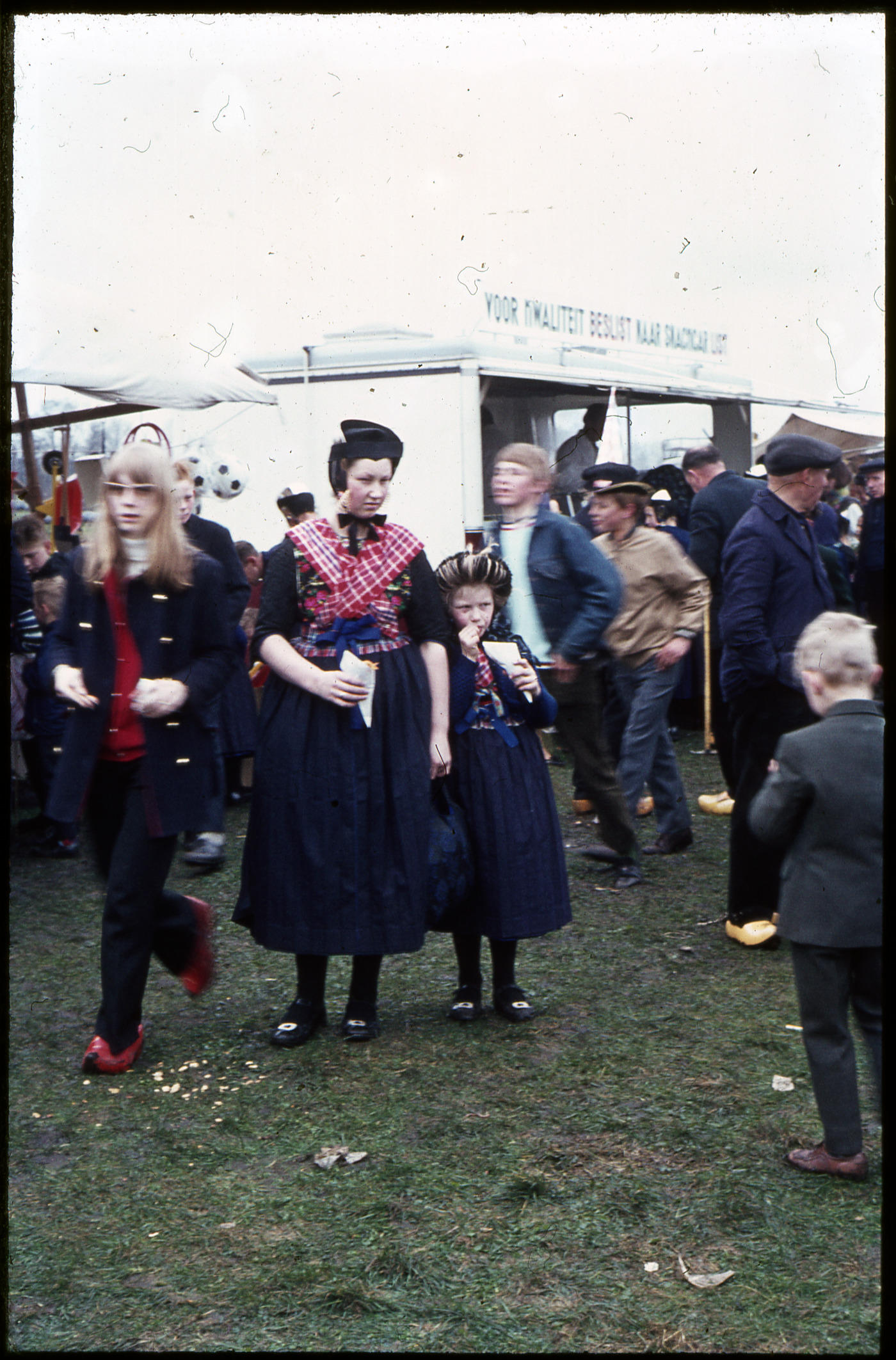 Meisjes op de jaarmarkt in Staphorst, 1968 (kleurendia)
