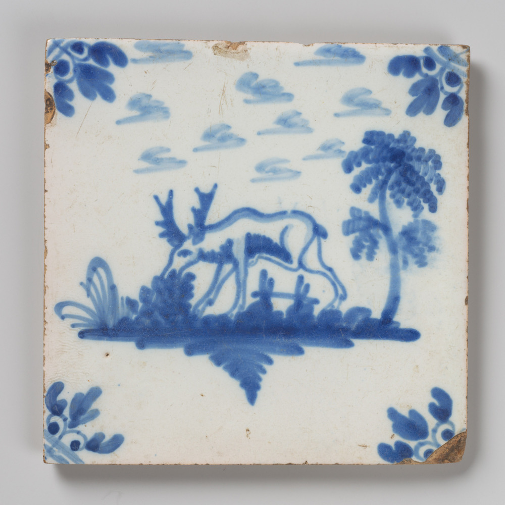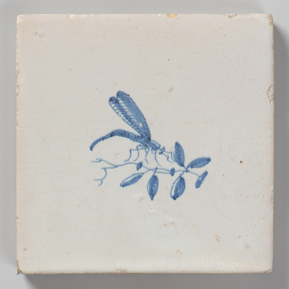 tegel van keramiek met tinglazuur, voorstellende: vo...