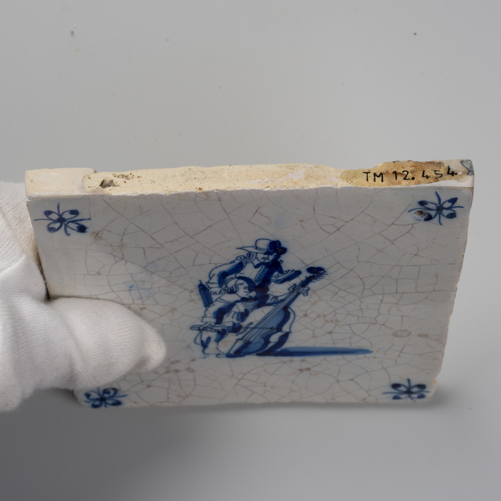 tegel van keramiek met tinglazuur, voorstellende: in...