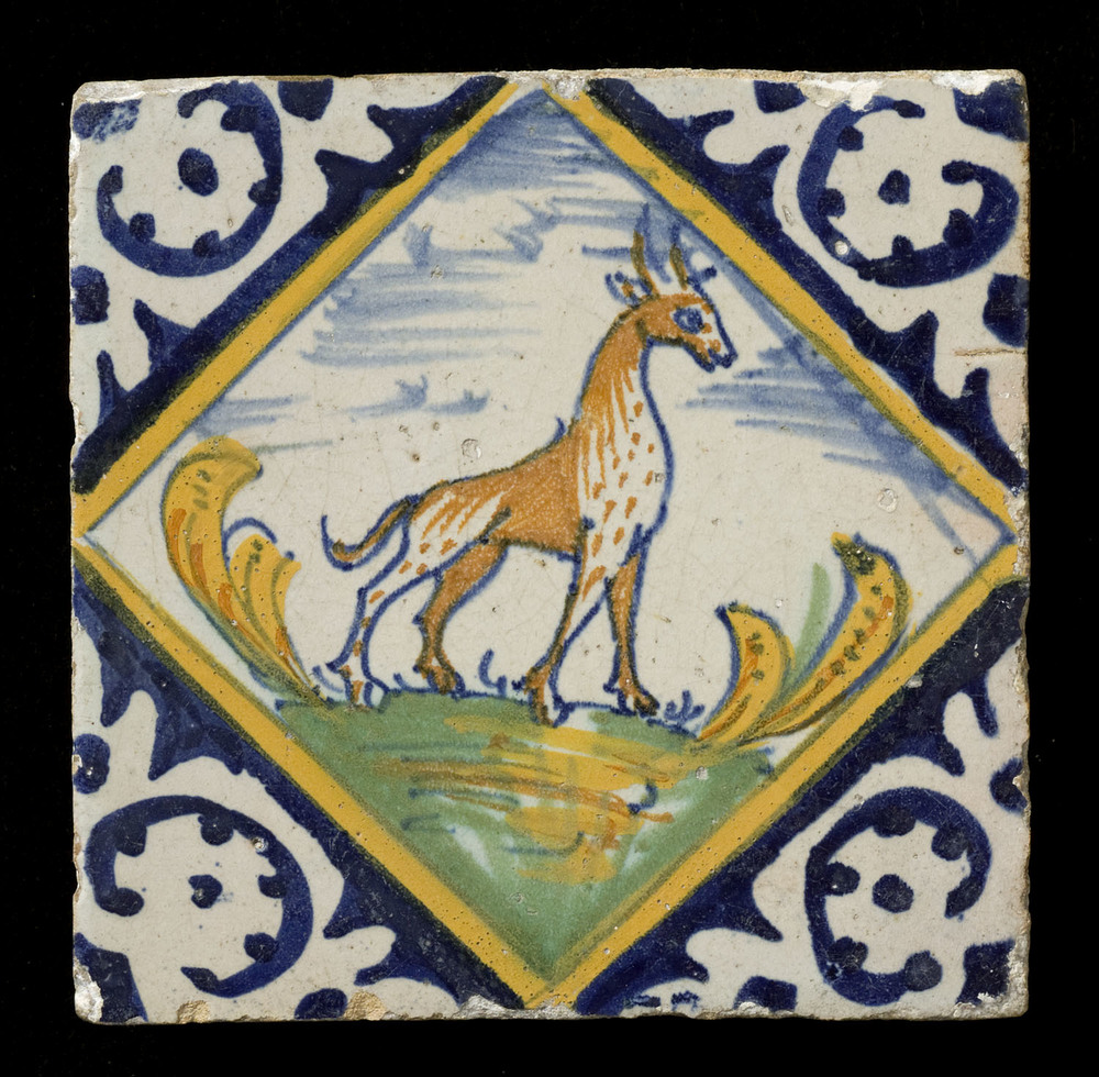Tegel van keramiek, tinglazuur, voorstellende een ra...