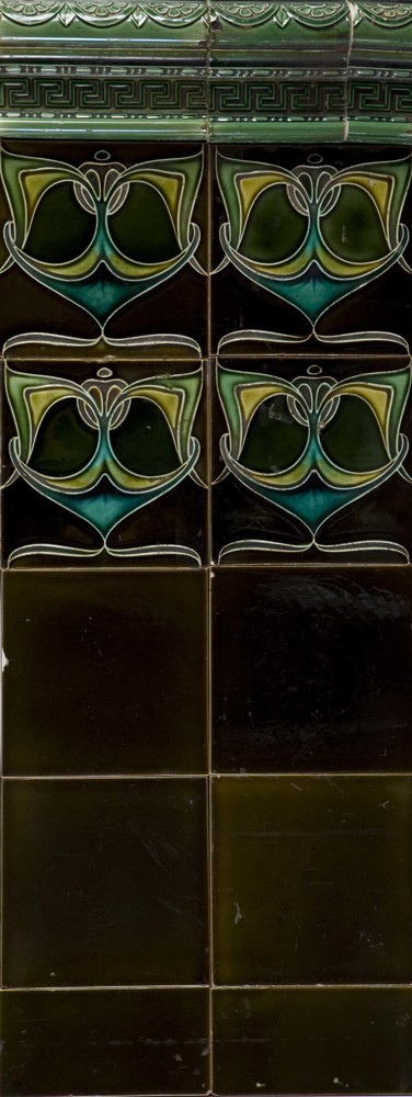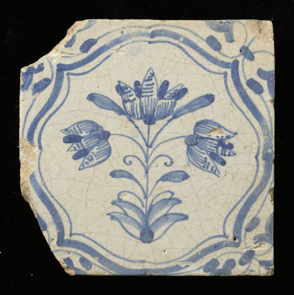 Tegel in tinglazuur, voorstellende drietulp, vervaar...