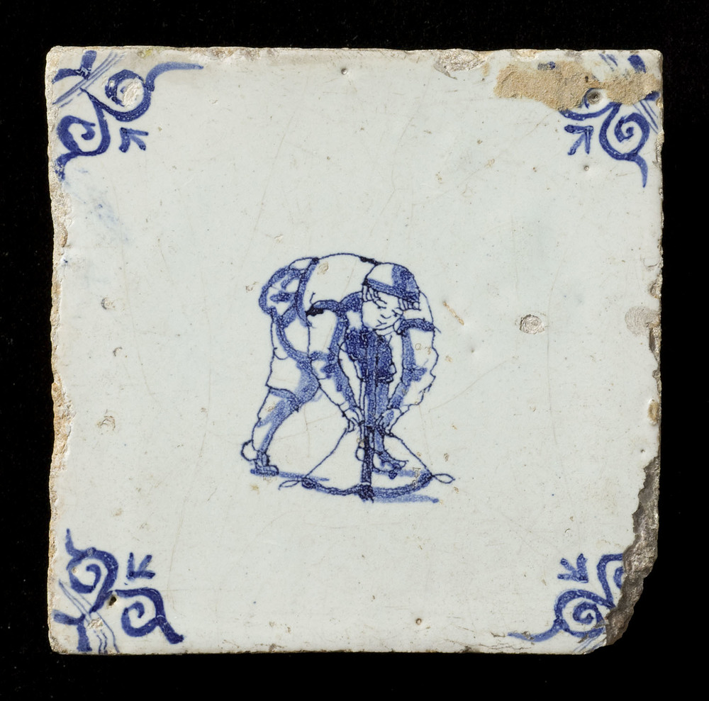 Tegel van keramiek met tinglazuur, voorstellende: wa...