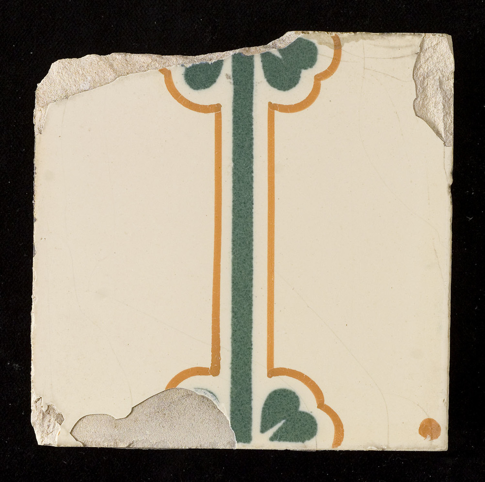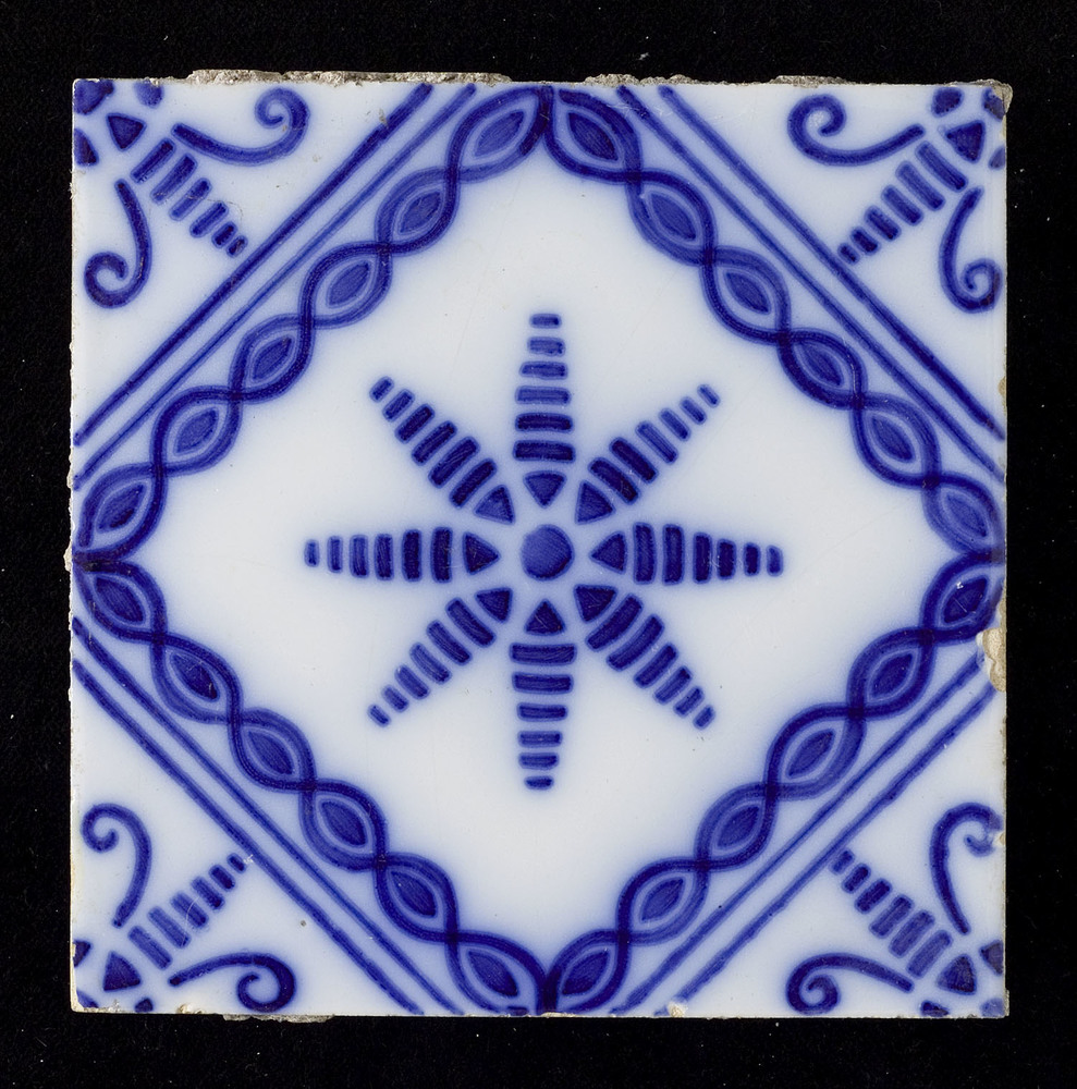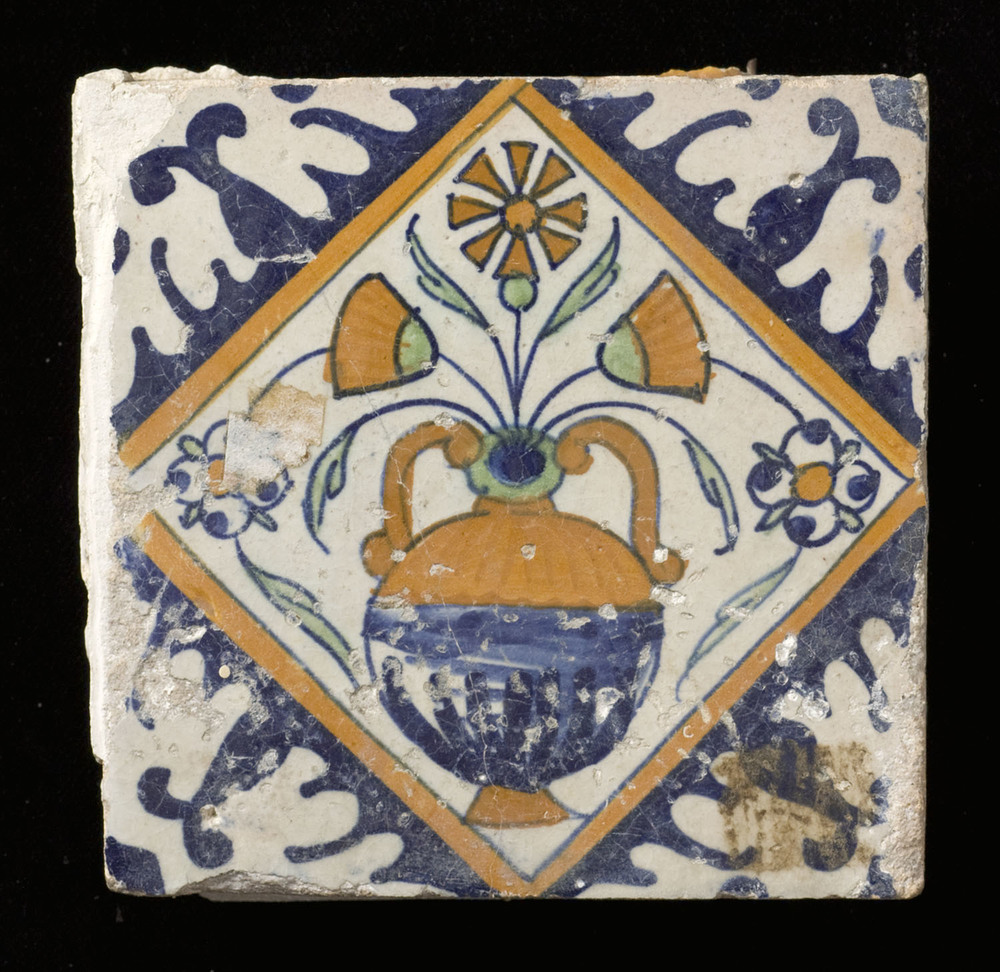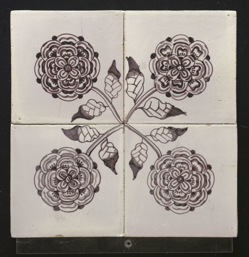 Tegel van tinglazuur, met voorstelling: ornament (de...