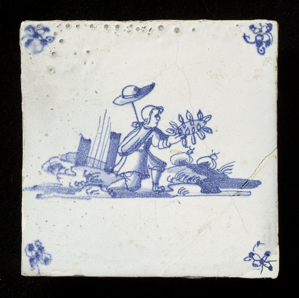 Tegel van keramiek met tinglazuur, voorstellende: He...