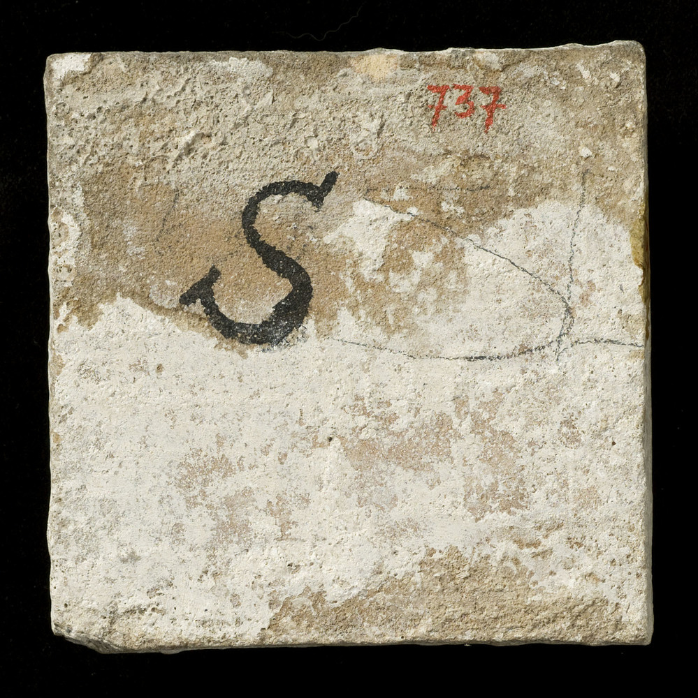 Vloertegel van keramiek, tinglazuur, voorstellende e...