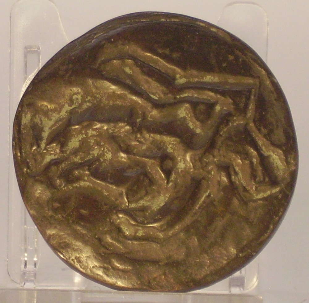 Serie van 5 bronzen penningen 'dansend figuur', gema...