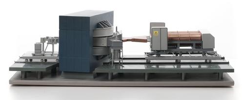 Model van de cyclotron, een deeltjesversneller, van ...