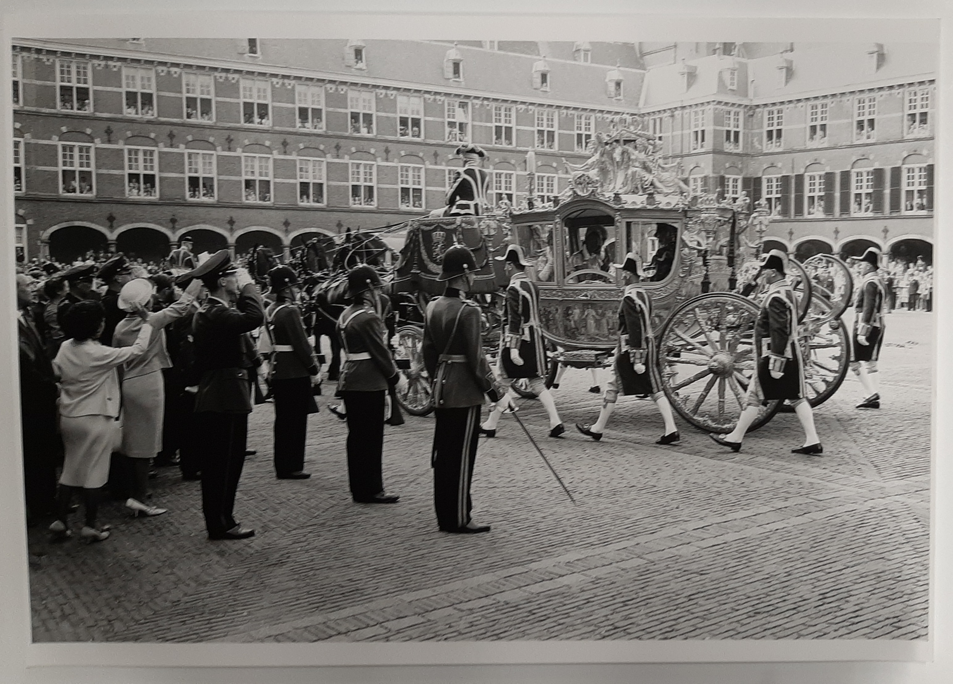 Koningin Juliana en Prins Bernhard tijdens de rijtour
