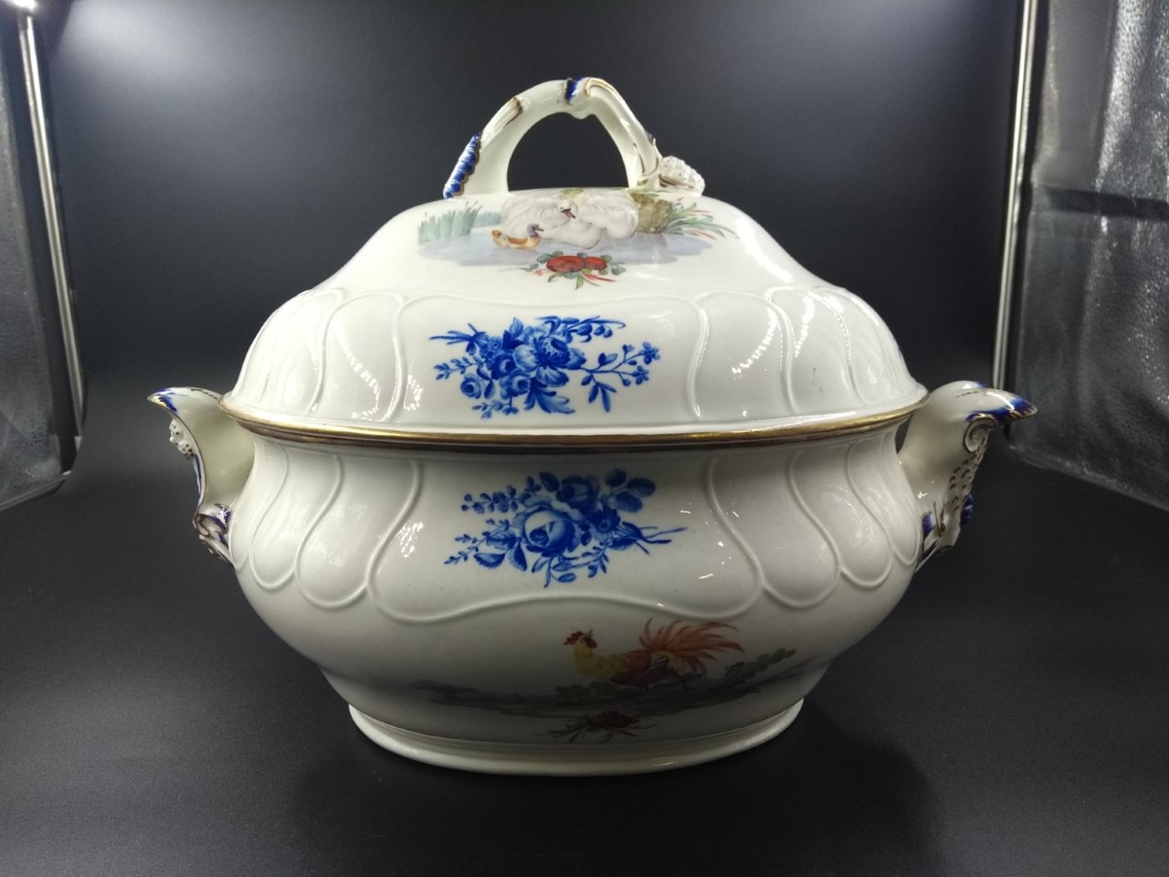 Platte ovale schaal met geschulpte rand en vogeldeco...