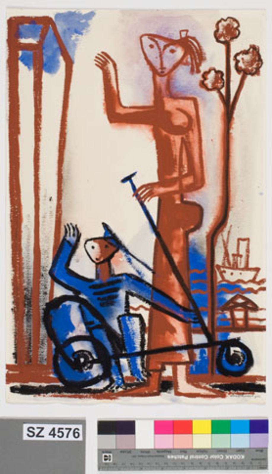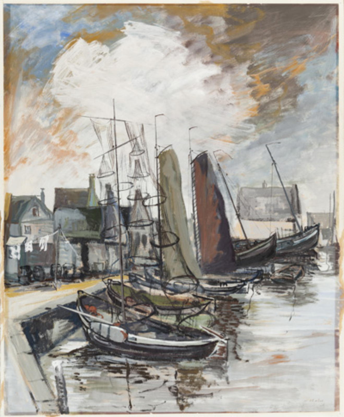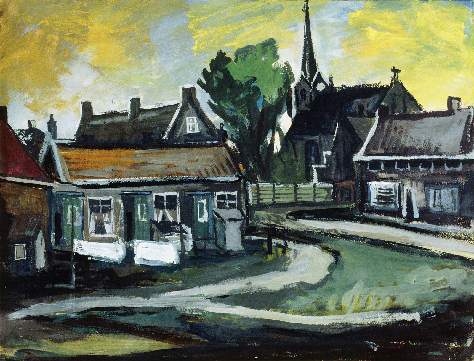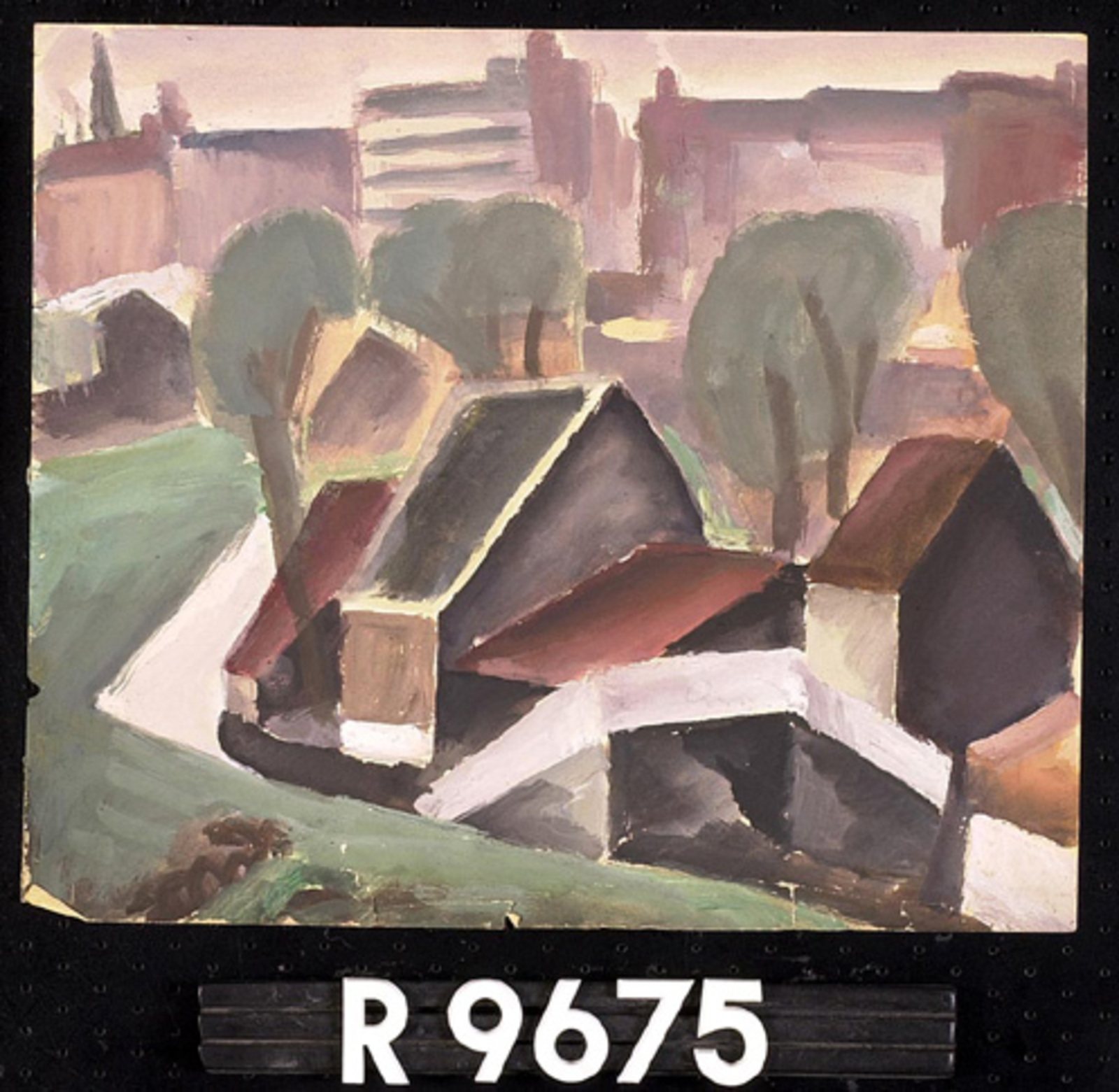 Dorpsgezicht (recto); stilleven van boeket bloemen e...