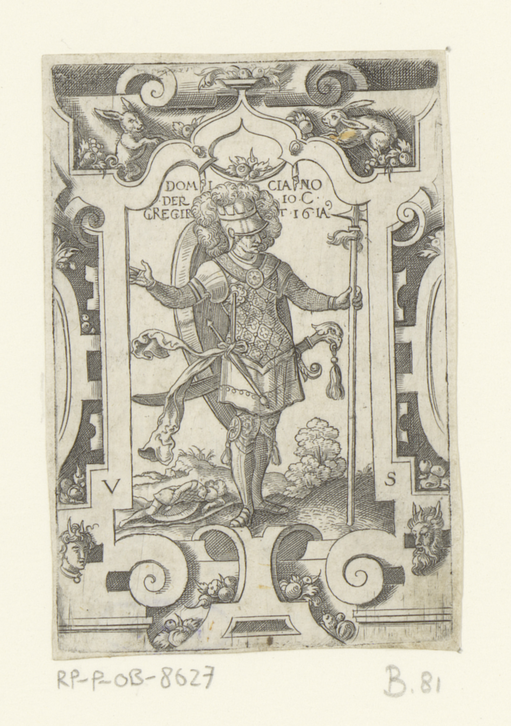 Keizer Domitianus in rolwerk omlijsting