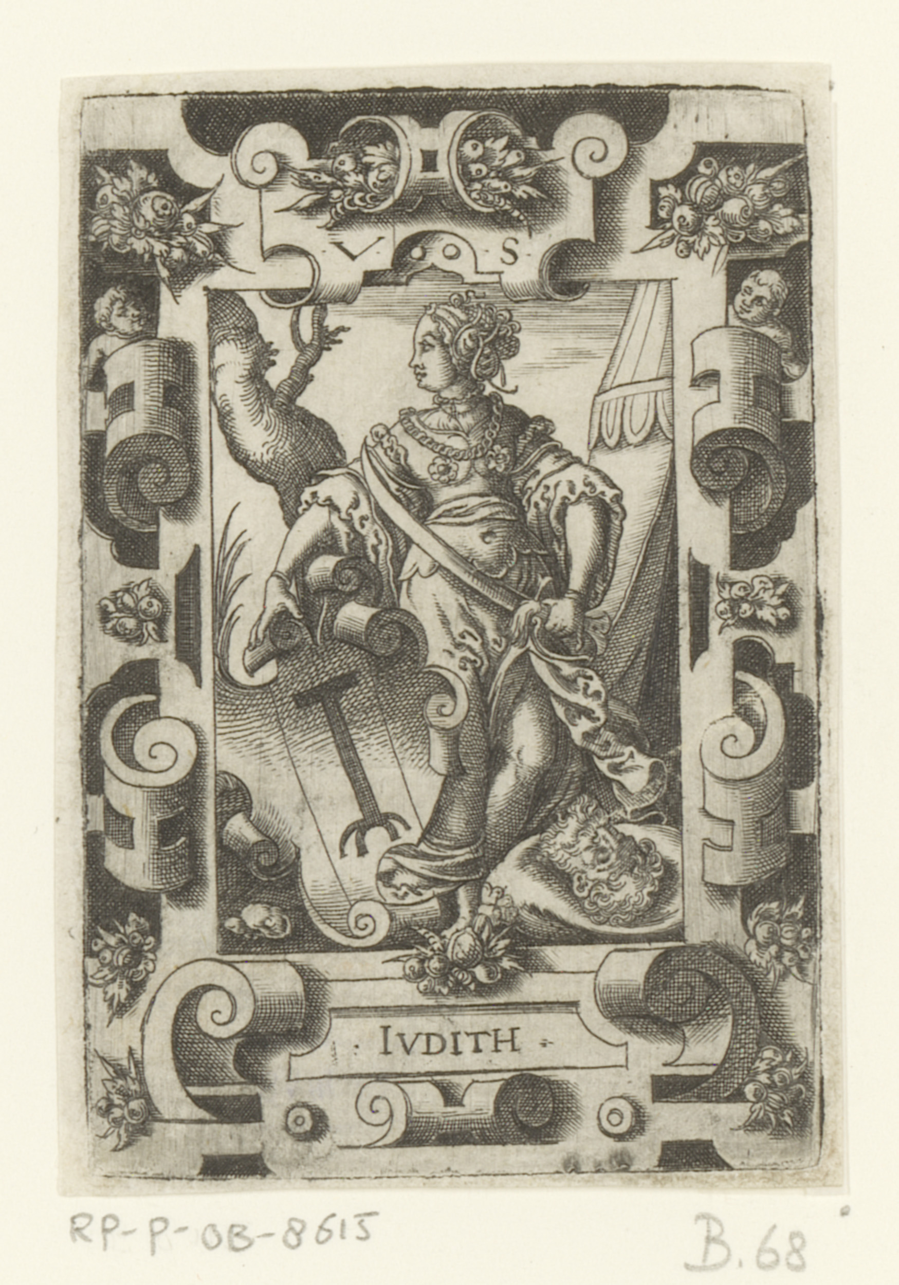 Judit met wapenschild in rolwerk omlijsting
