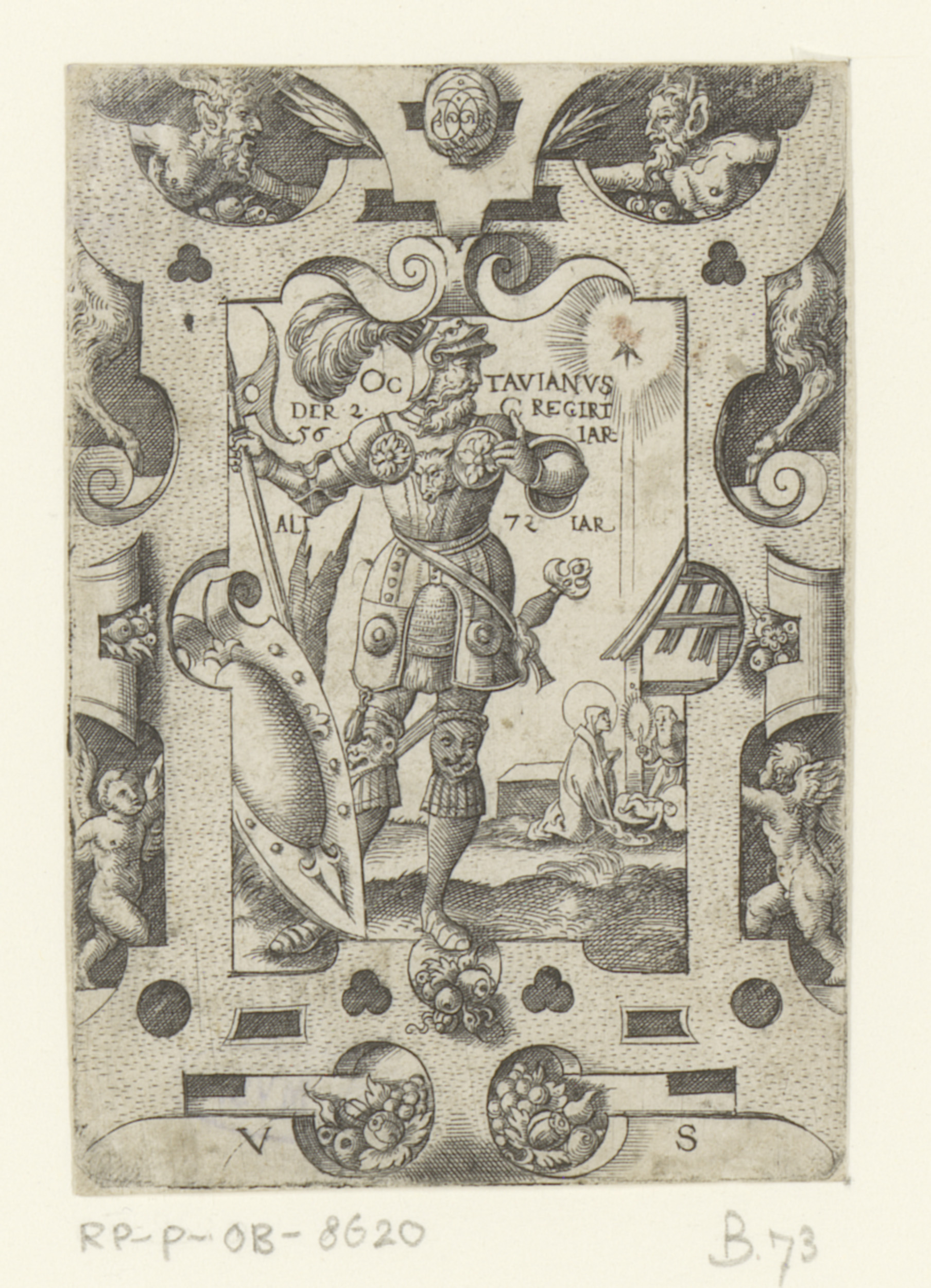 Keizer Augustus in rolwerk omlijsting