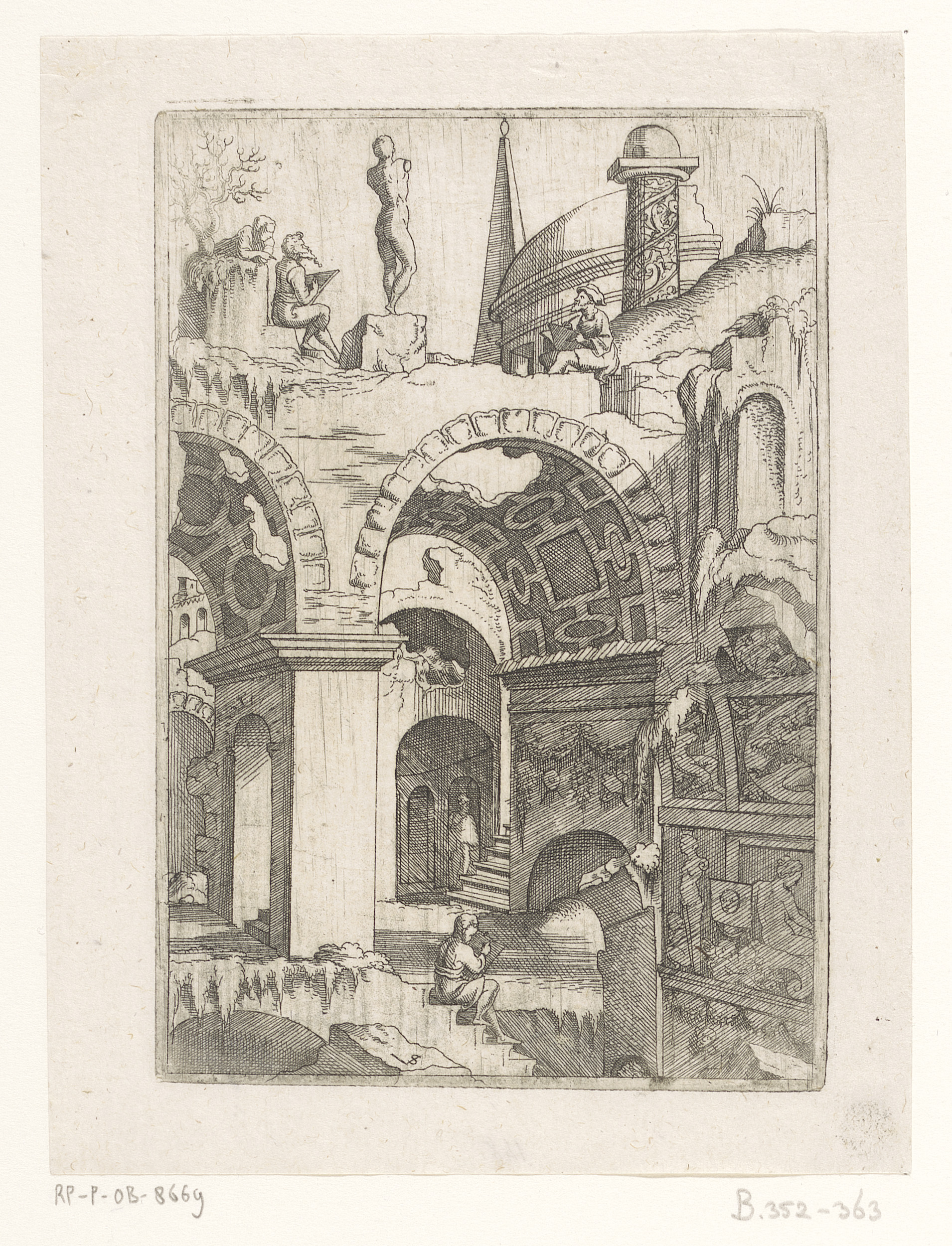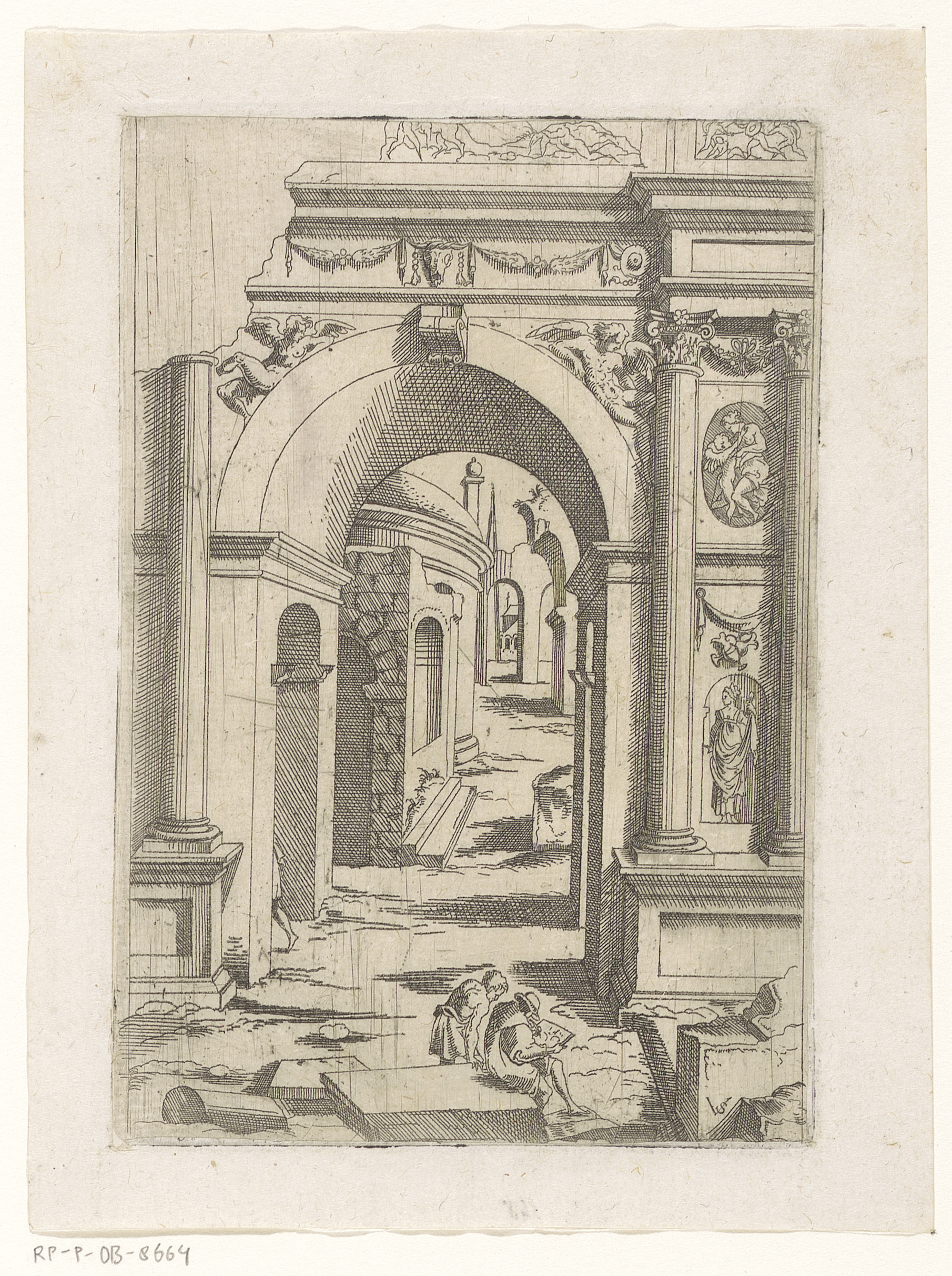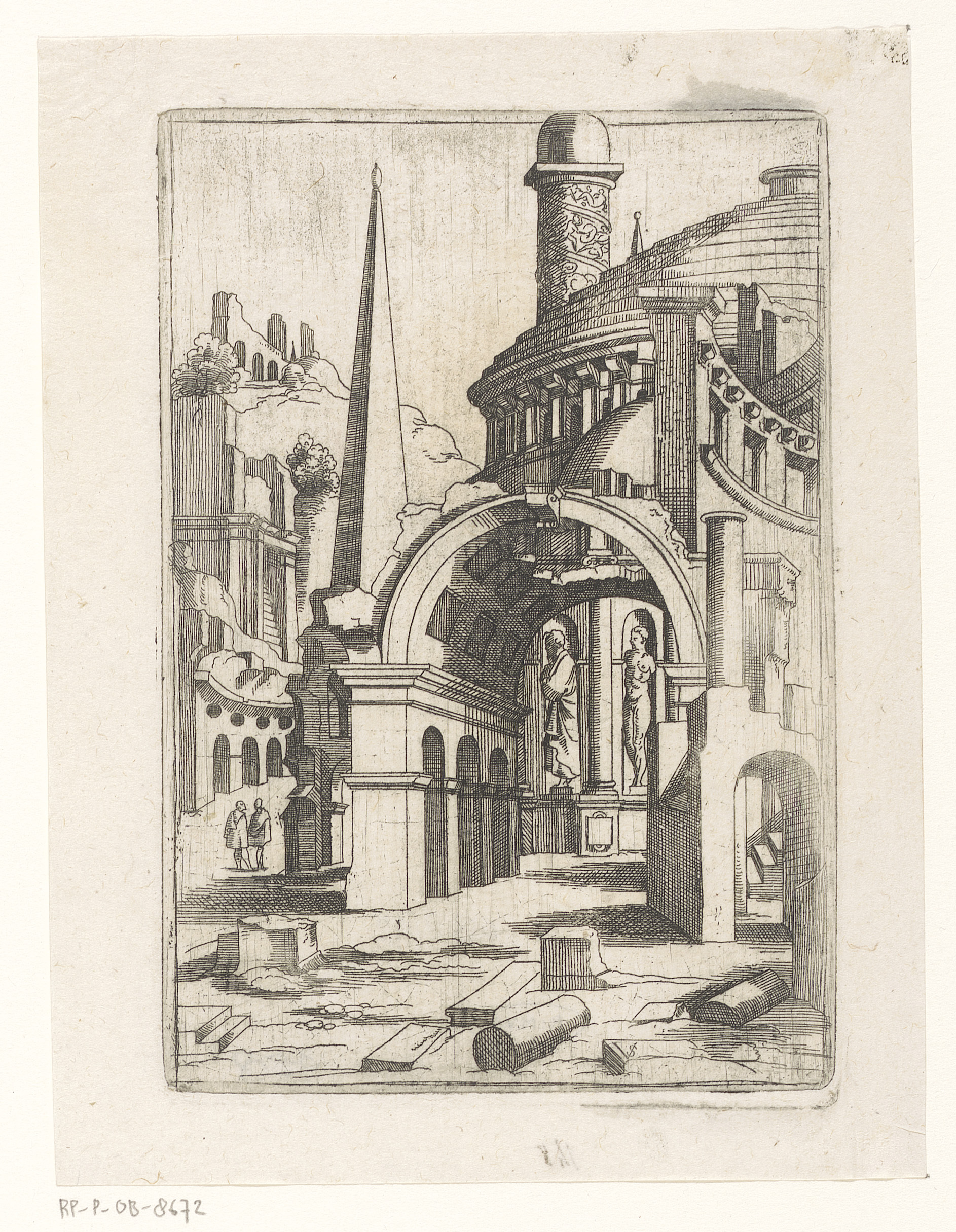 Ruïnes met een obelisk, koepel en triomfzuil