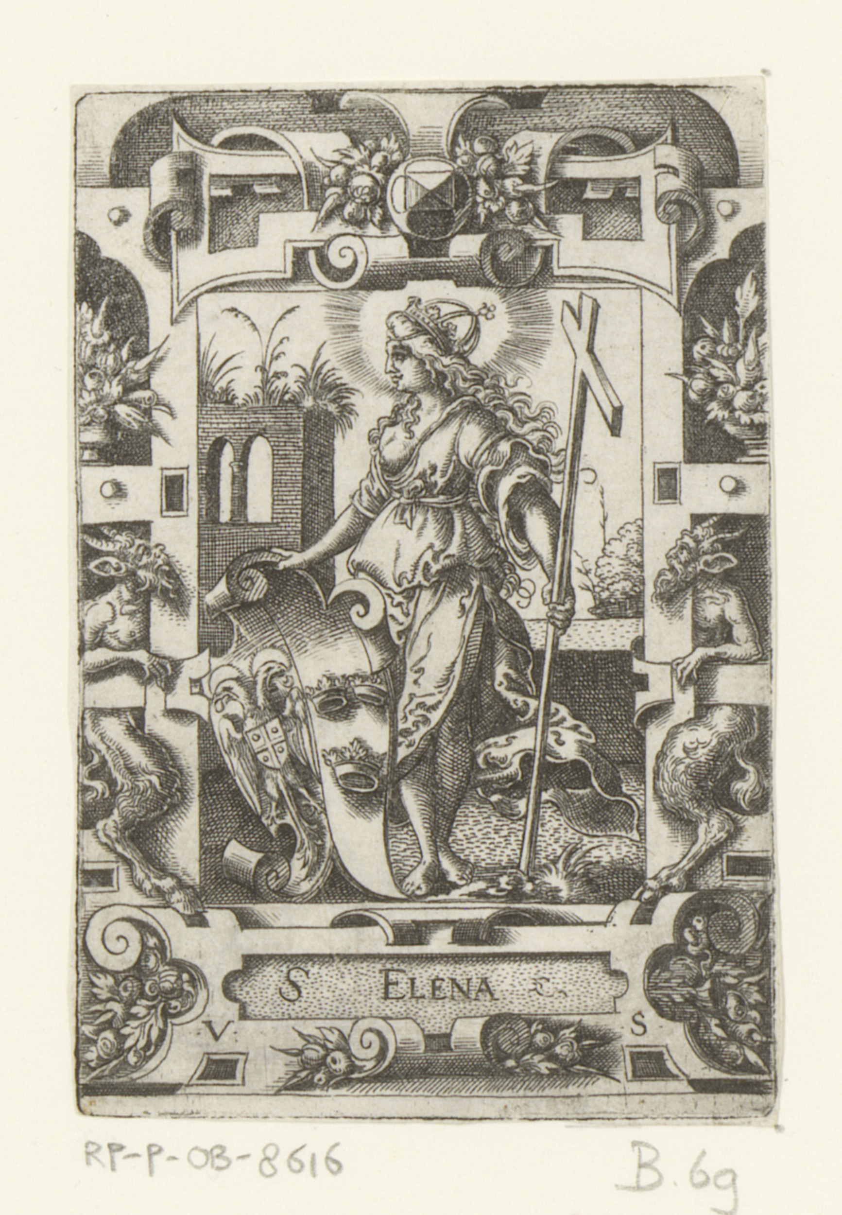 Helena met wapenschild in rolwerk omlijsting