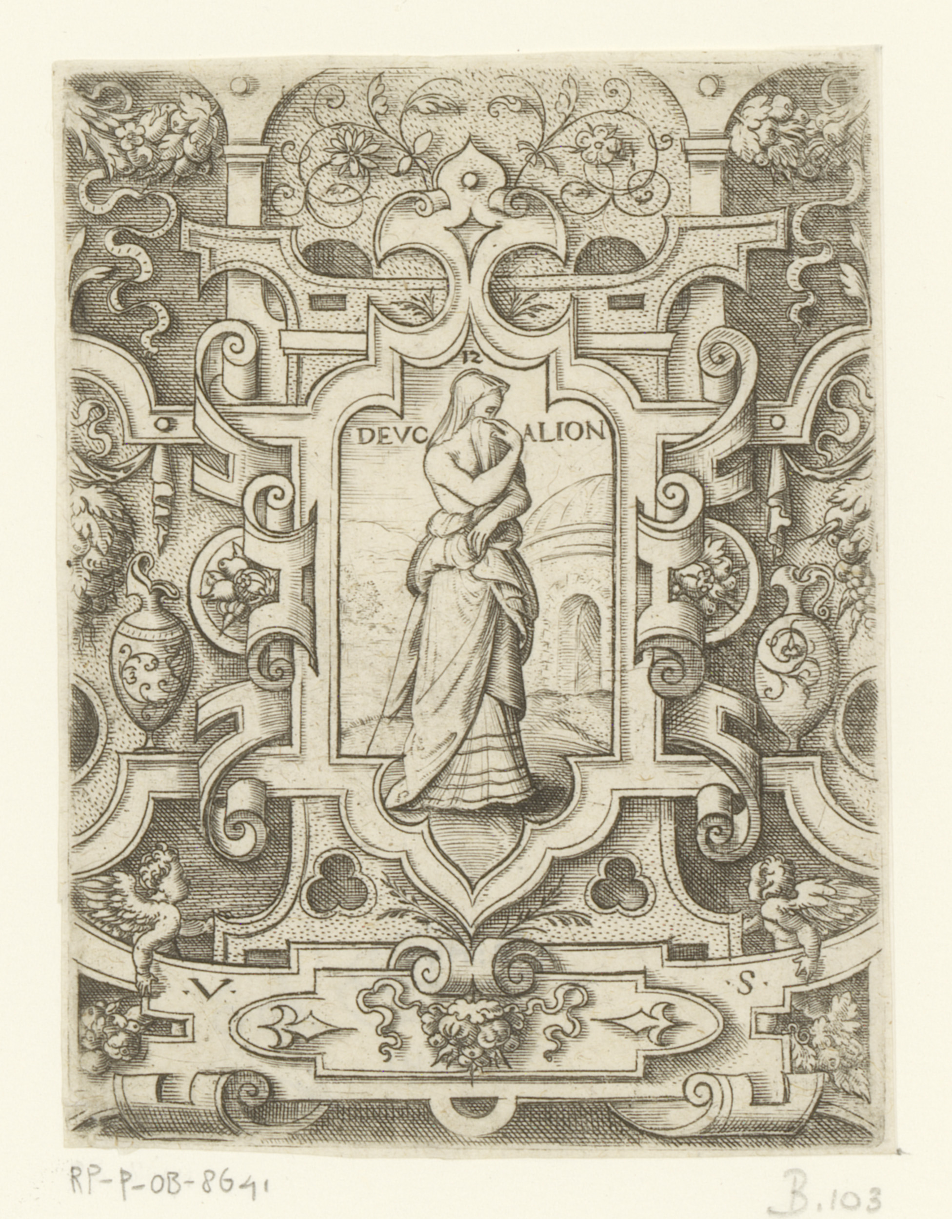 Pyrrha in een rolwerk omlijsting