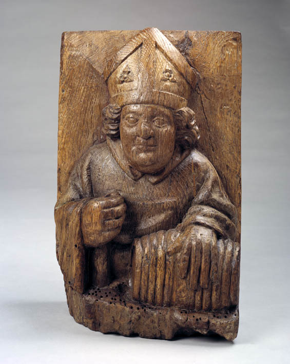 Willibrord is ten halve lijve op de balksleutel afgebeeld. Zijn linkerhand rust op een vaatje. In de geheven rechter droeg hij waarschijnlijk een nu verdwenen bisschopsstaf. Hij is gekleed in een kazuifel met amict en heeft een mijter op het hoofd. Polychromie: Sporen rose incarnaat (?) bij ogen, neus, in de mond en langs de ...