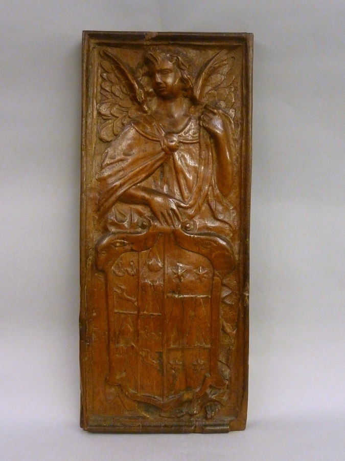 Engel met wapenschild met het wapen van Barbara Daman(t) (1585-1645), pendant van ABM bh600a