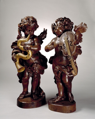 Engeltje met viool en strijkstok, afkomstig van een orgel, pendant van ABM bh605b