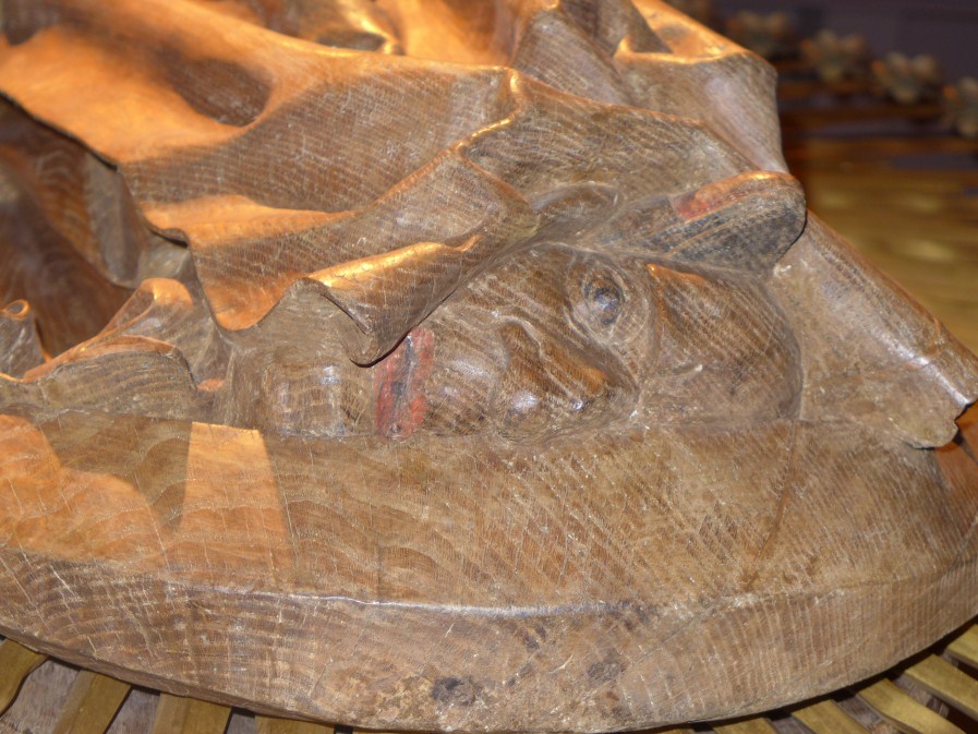 Het marianum bestaat uit twee rug-aan-rug geplaatste beelden van Maria met kind, waartussen een amandelvormige stralenkrans (mandorla), waarop, aan het uiteinde van de stralen, een rozenkrans is aangebracht. Zijde a: Maria is staande voorgesteld, rustend op haar rechterbeen. Zij staat op de maansikkel, die onder haar voeten, en profil, een mannengezicht vertoont. Het naakte kindje, ...