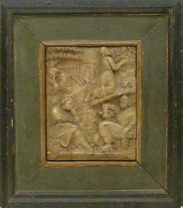 In de Hof van Olijven, waarvan men de omheining en de toegangspoort op de achtergrond ziet, knielt Christus rechtsboven in de voorstelling, in gebed op een rotsachtige heuvel. Vanuit de wolken toont een engel hem het kruis en de lijdenskelk. De drie apostelen zijn zittend in slaap gevallen. Rechts op de voorgrond zit Petrus steunend ...