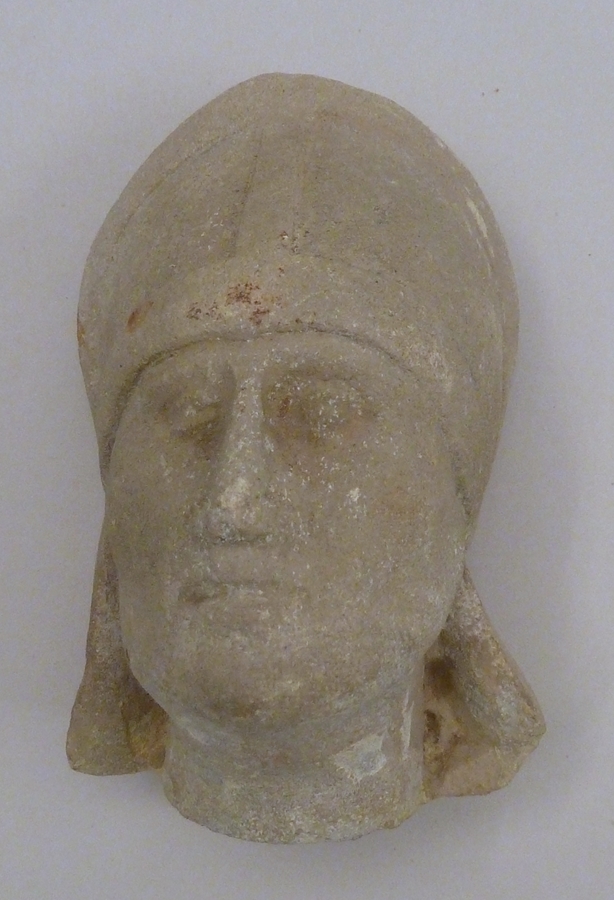 Kop met mijter, van bisschop of abt