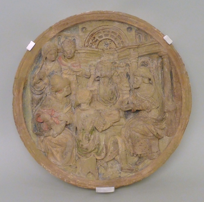 Jezus in de tempel met drie schriftgeleerden, Jozef en Maria