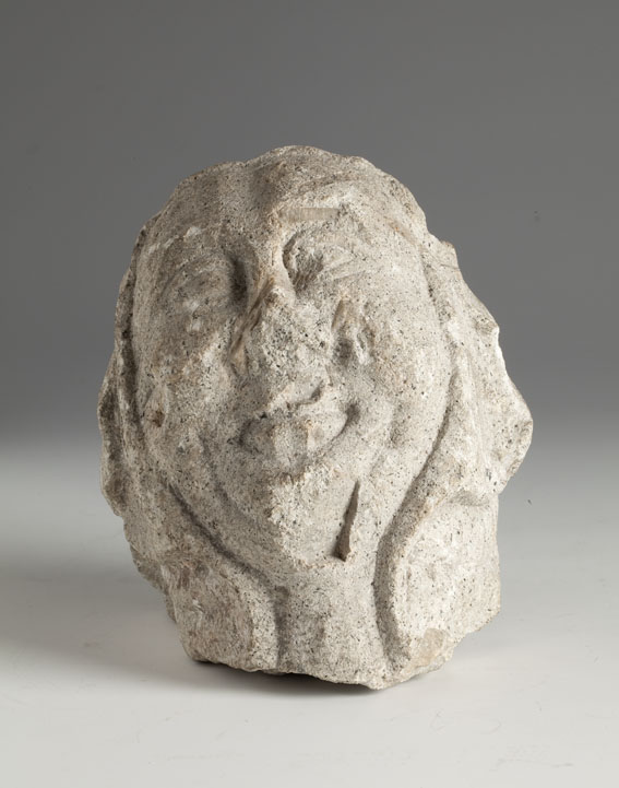 Het glimlachende vrouwenkopje heeft een eivormig gelaat op een slanke hals, een onderkin en vrij grote, dicht bijelkaar staande ogen en een verticale rimpel in het voorhoofd. De oogleden zijn vrij zwaar. Over het hoofd een wijde capuchon of doek, waarvan de rand eerst naar achteren en dan weer naar voren is geslagen. Techniek: Boven- ...