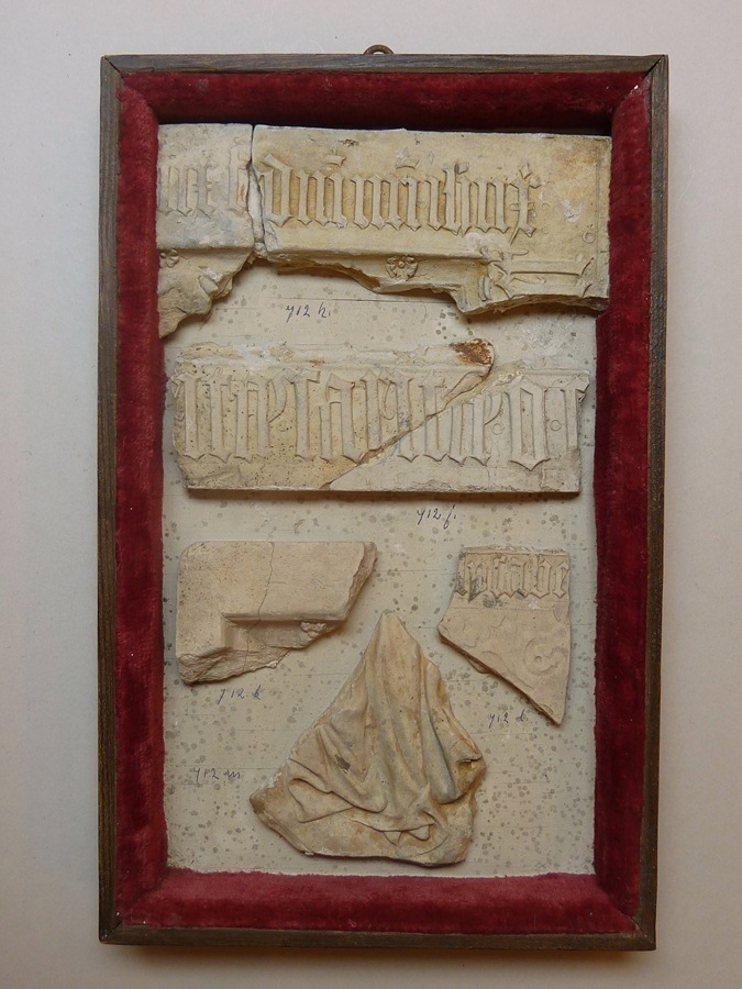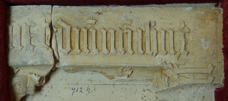 Fragment van omlijsting reliëf met tekst, opgegraven bij klooster Eemstein bij Zwijndrecht