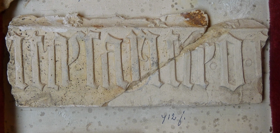 Fragment van omlijsting reliëf met tekst, opgegraven bij klooster Eemstein bij Zwijndrecht