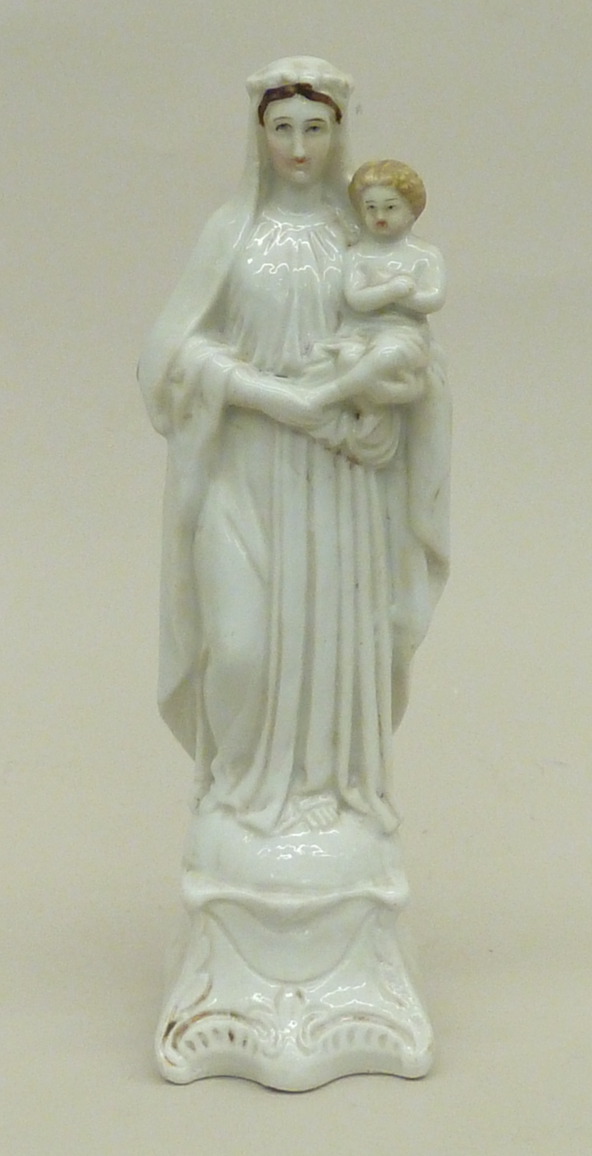 Maria op halve wereldbol, met kind op linkerarm