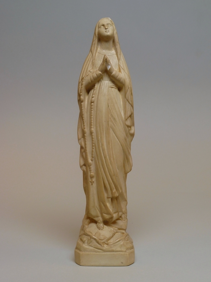 O.L.V. van Lourdes met rozenkrans, communiegeschenk voor D. Bouvy