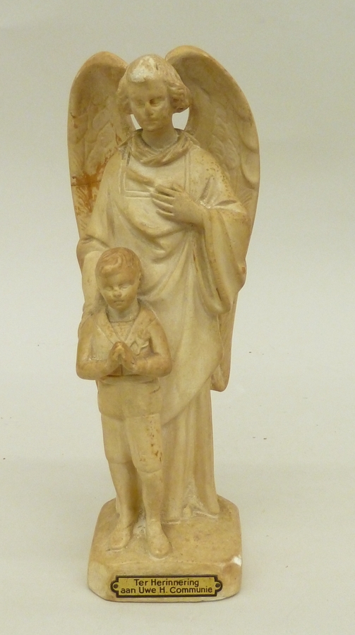 H. Engelbewaarder buigt zich over jongetje in matrozenpakje, H. Communie herinnering
