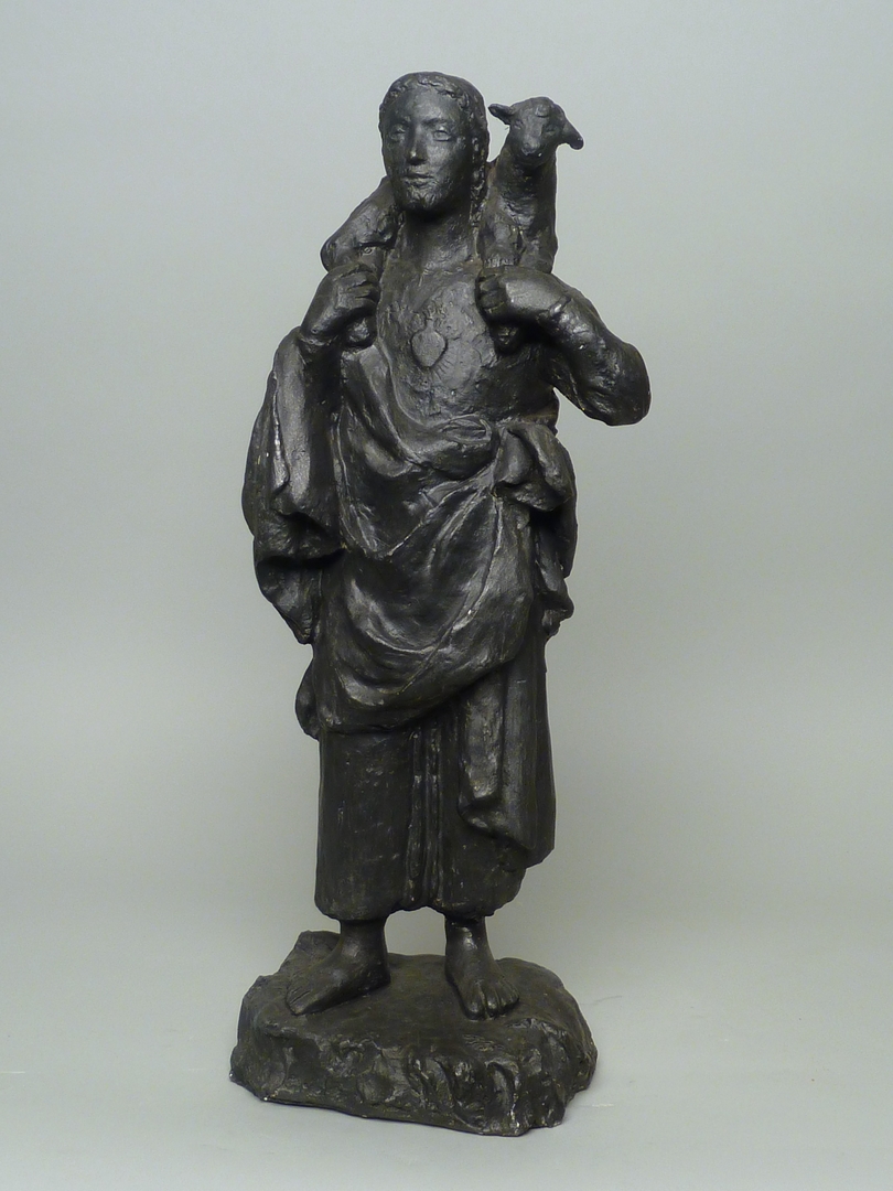 Christus als de Goede Herder, op de schouders een lam, brons-imitatie