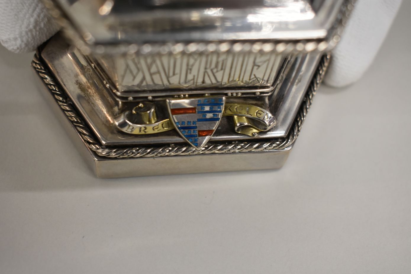 Maria als hemelkoningin met Christuskind, staande op de maansikkel, op sokkel wapenschild en lint met "Breukelen"
