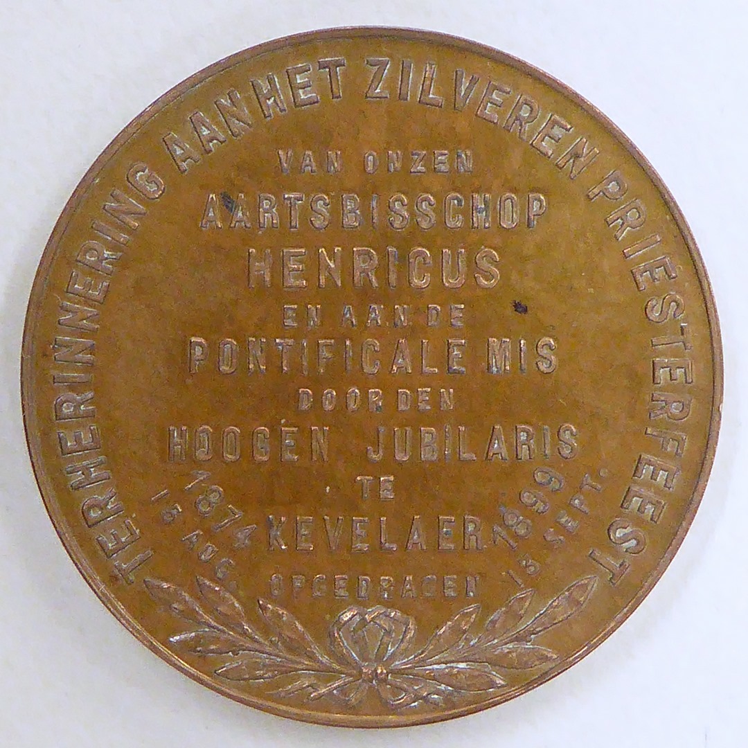 Gedenkpenning met Maria van Kevelaer, kz. met ".. zilveren priesterfeest .." van Van de Wetering