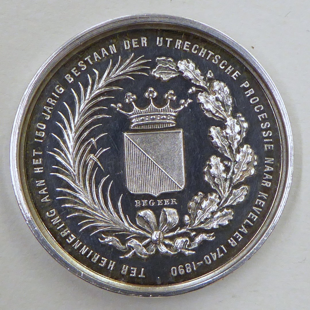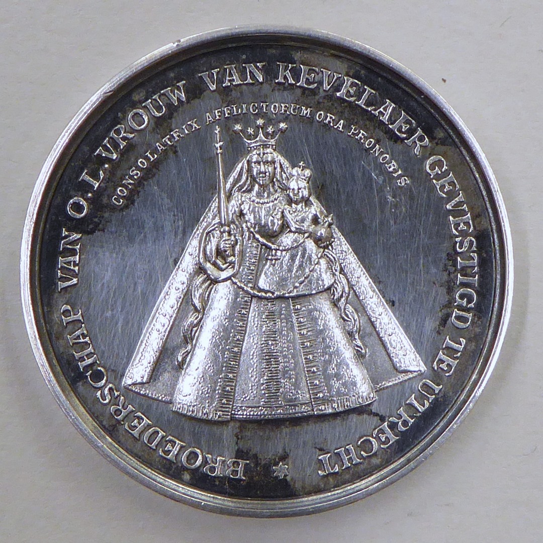 Bedevaartspenning met Maria van Kevelaer, kz. met ".. 150 jarig bestaan der Utrechtsche processie .."