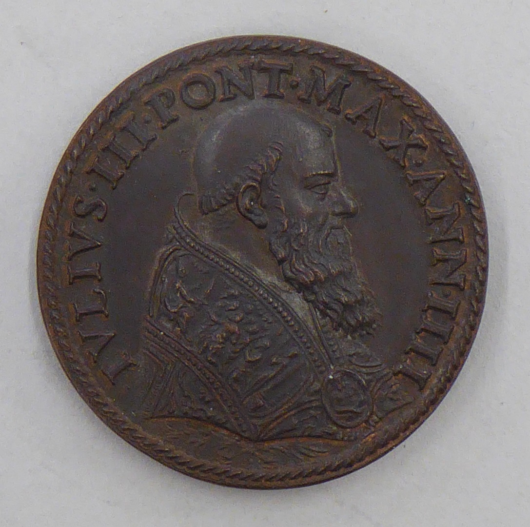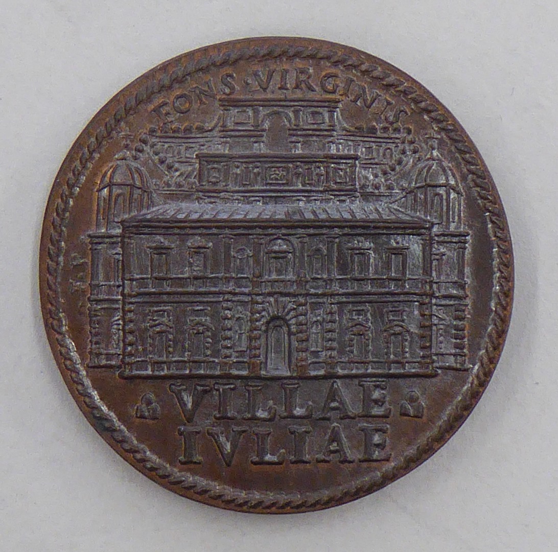 Pauspenning met portret paus Julius III (1550-1555), kz. voorgevel Palazzo Villae Juliae
