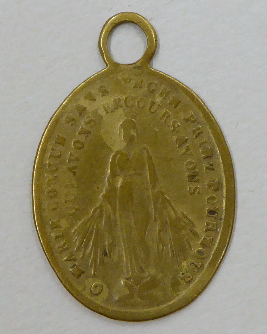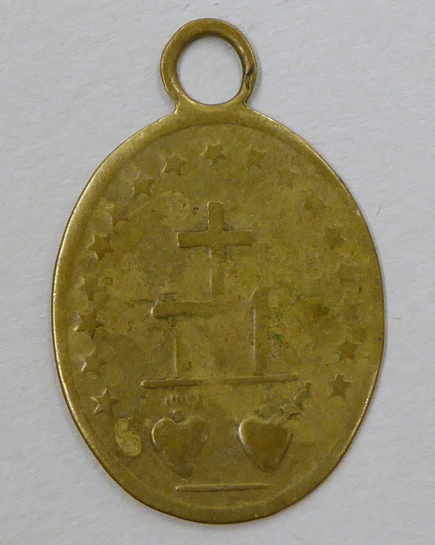 Scapulierpenning Maria Onbevlekte Ontvangenis, ovaal, kz. Mariamonogram