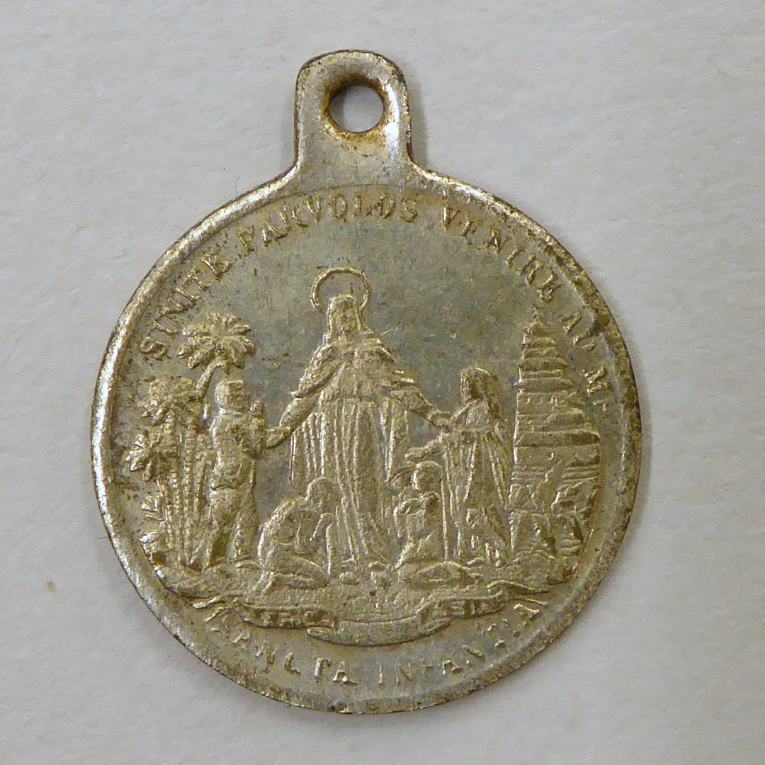 Scapulierpenning Maria Onbevlekte Ontvangenis, kz. met "Sancta infantia", Maria, kinderen