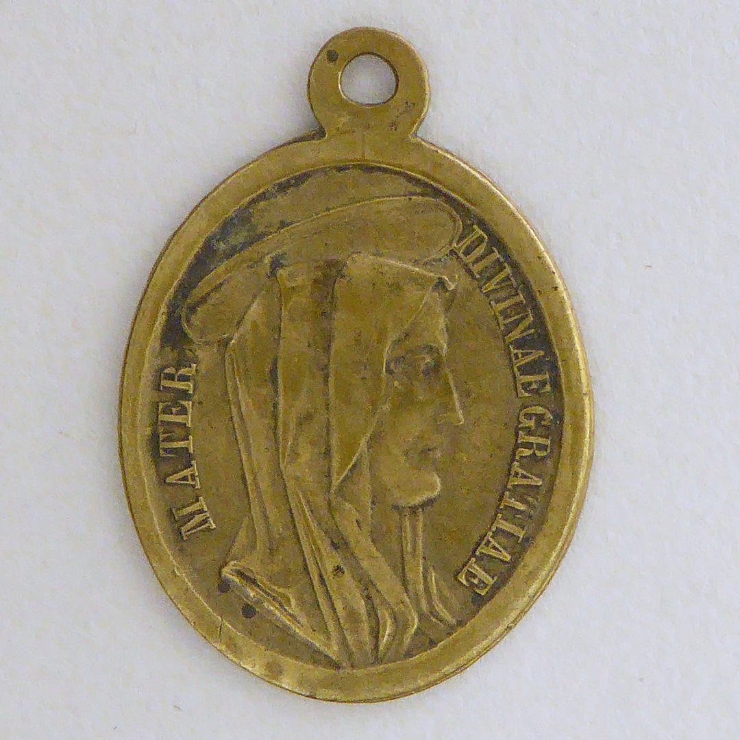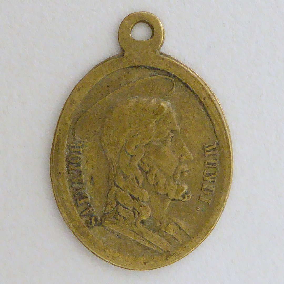 Scapulierpenning, ovaal, met Christus, kz. Maria