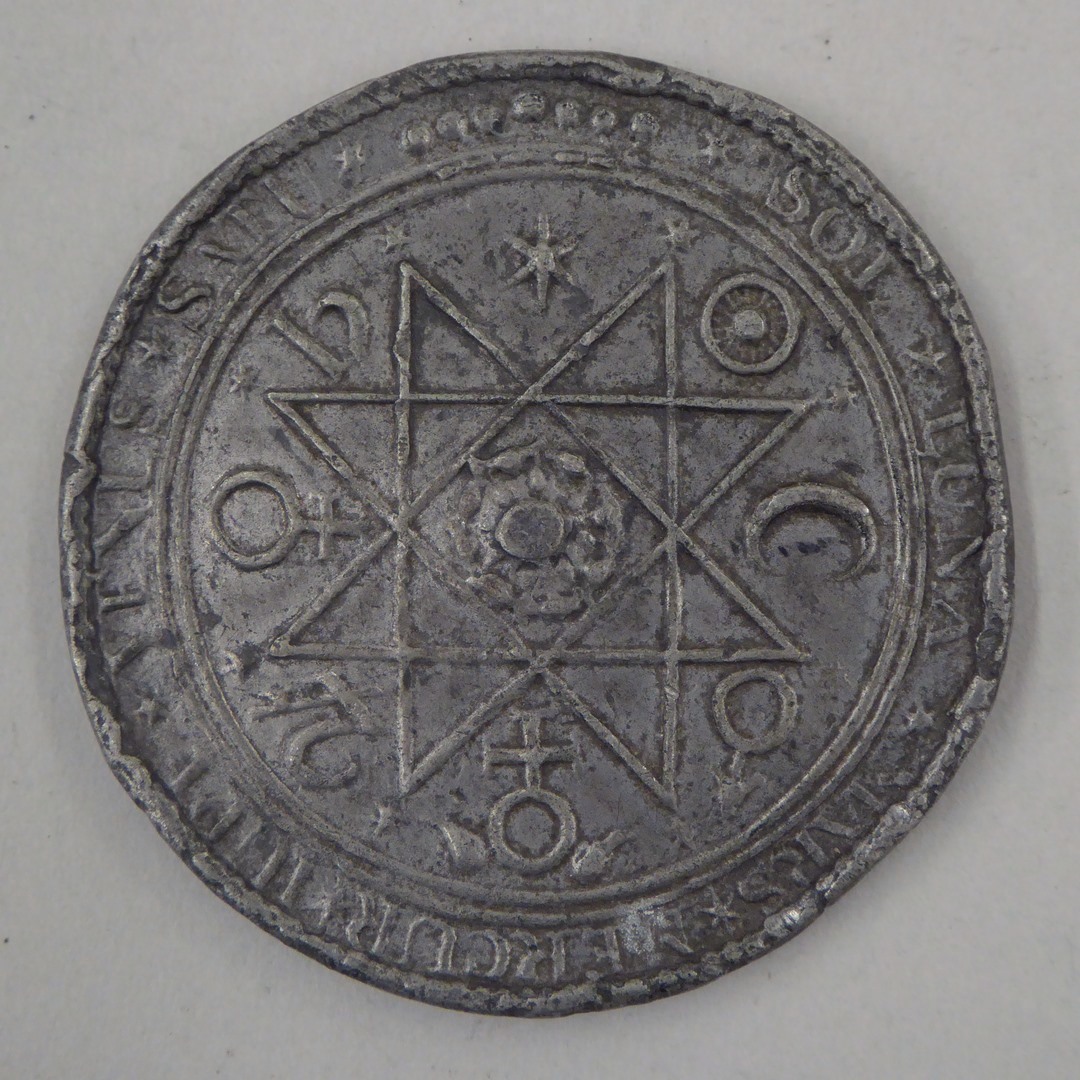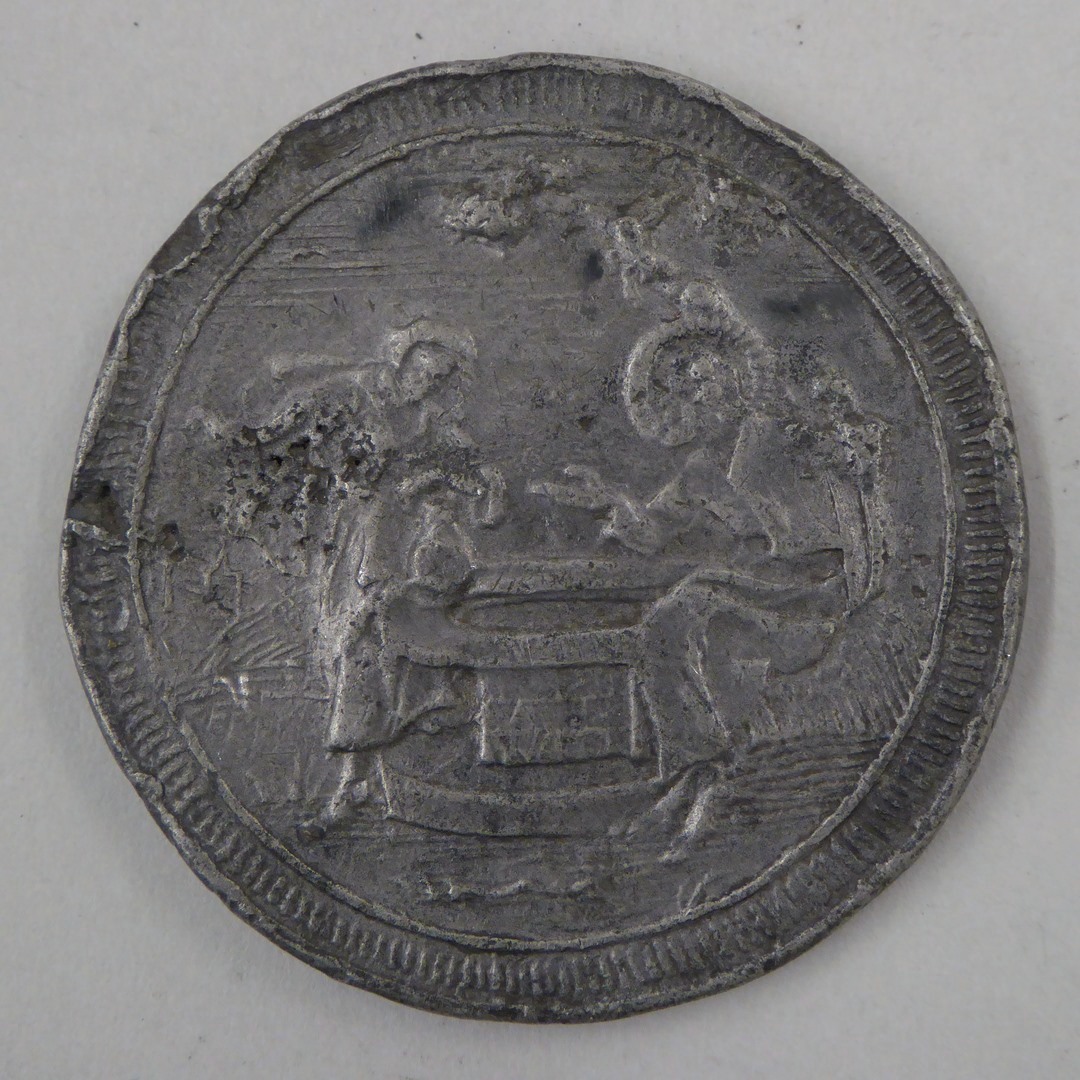Penning met Christus en Samaritaanse vrouw, kz. ster en astrologische tekens