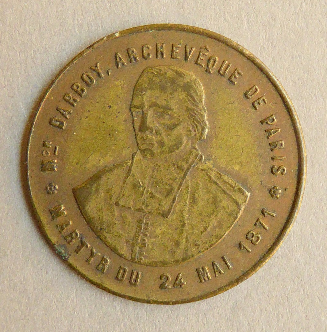 Gedenkpenning met portret Mgr. Darboy, aartsbisschop van Parijs, martelaar, kz. tekst
