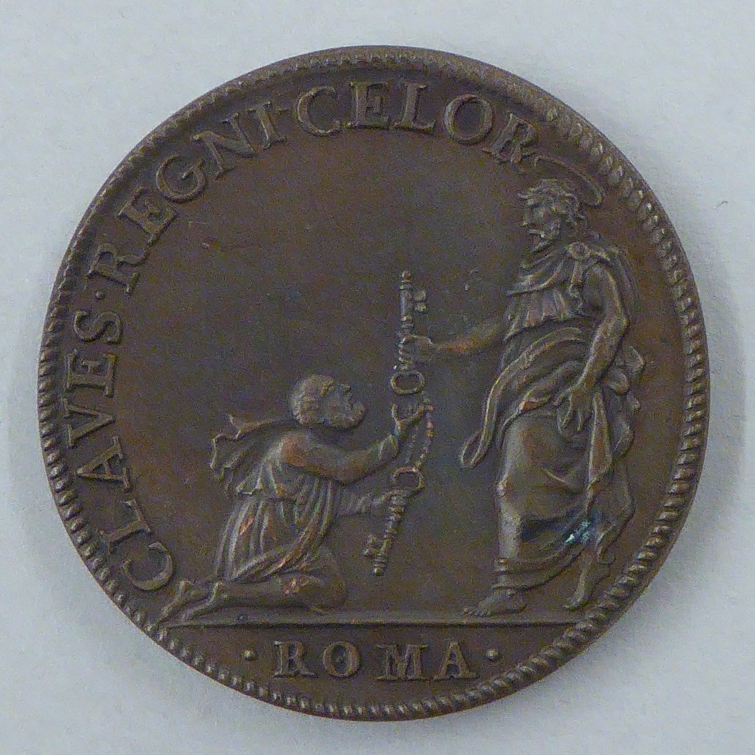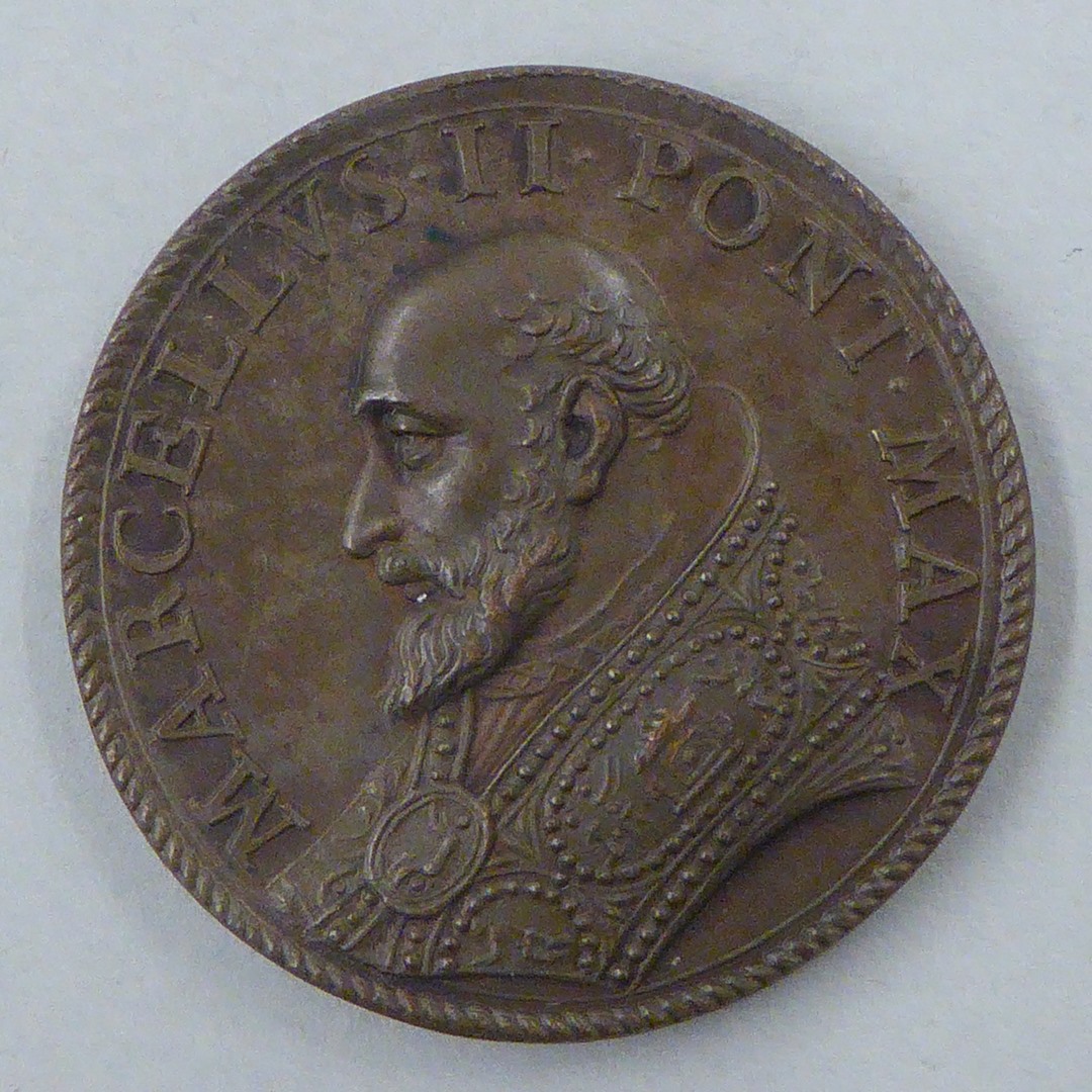 Pauspenning met portret paus Marcellus II (1555), kz. Christus overhandigt de sleutels aan Petrus