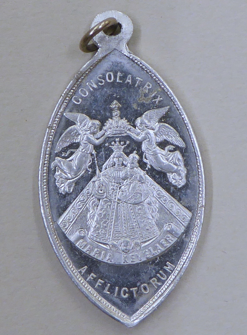 Scapulierpenning, amandelvormig, met O.L.V. van Kevelaer, kz. Maria Onbevlekt Ontvangen