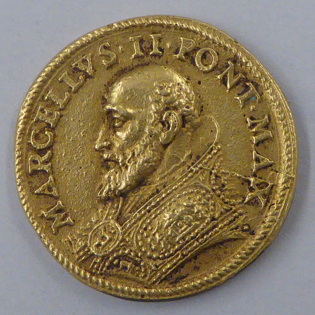 Pauspenning met portret paus Marcellus II (1555), kz. Christus overhandigt de sleutels aan Petrus