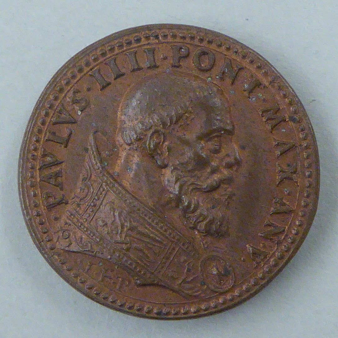 Pauspenning met portret paus Paulus IV (1555-1559), kz. Jezus verjaagt wisselaars