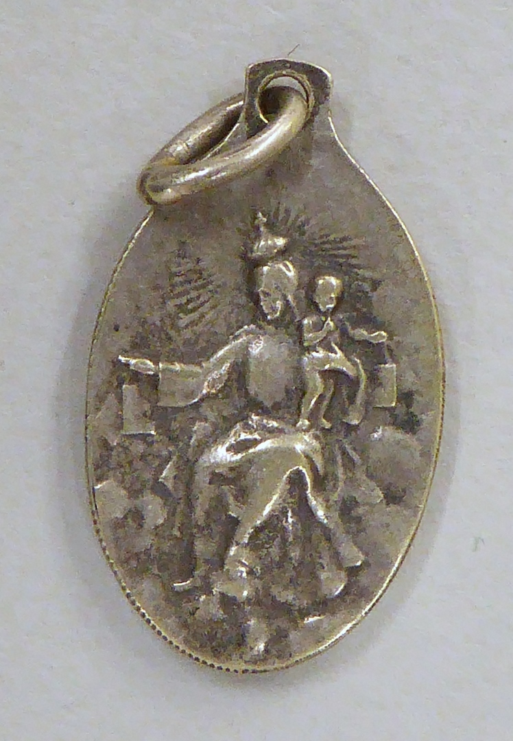 Devotiepenning, ovaal, met H. Hart van Jezus, kz. O.L.V. met kind