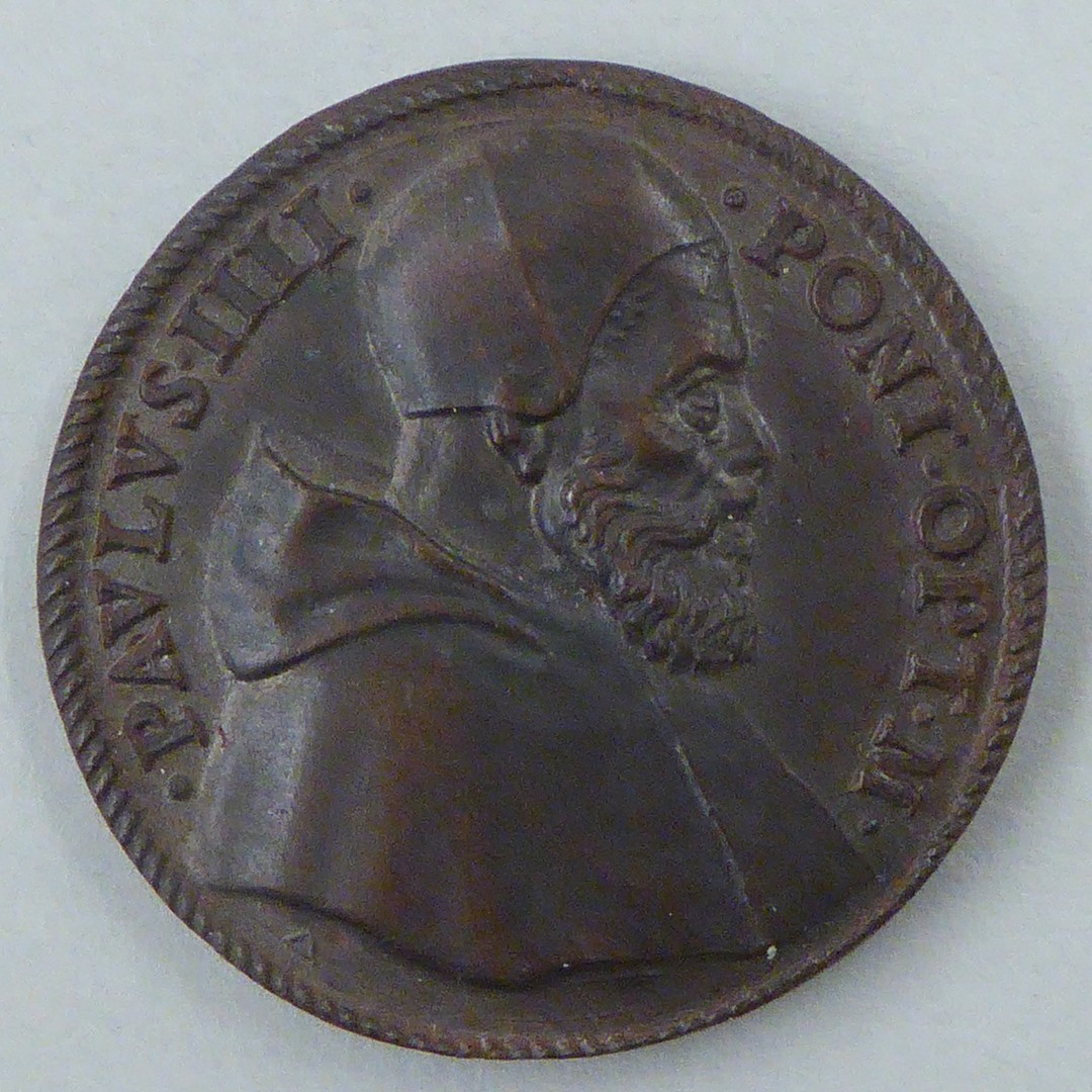 Pauspenning met portret paus Paulus IV (1555-1559), kz. Jezus verjaagt wisselaars